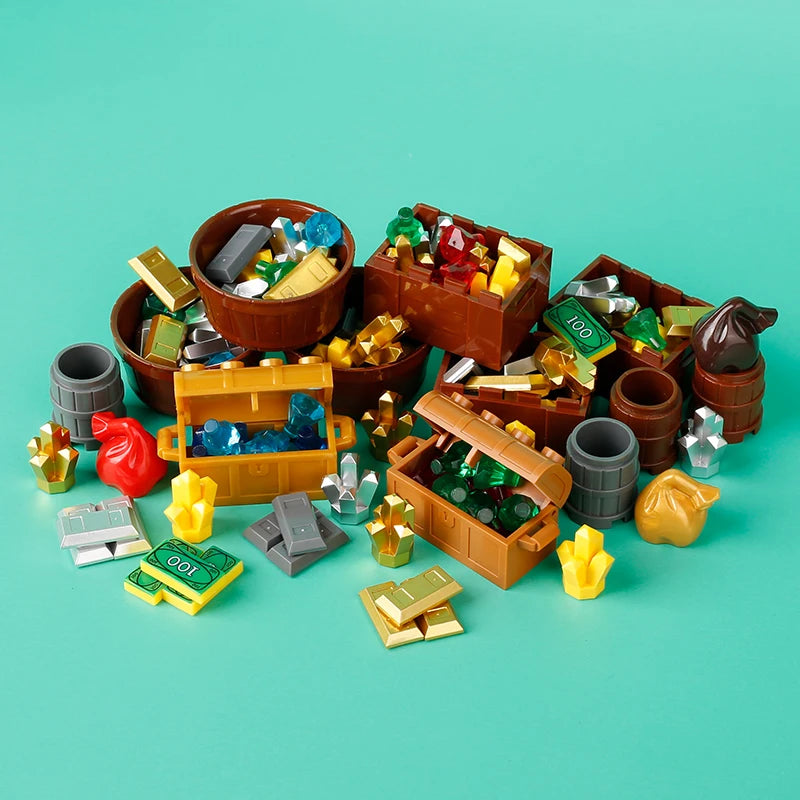 MOC ATM Machines Precious Gold Egg Ore Diamond Building Blocks Precious Safe Deposit Box Wooden Barrel Bank Card Bricks Toys