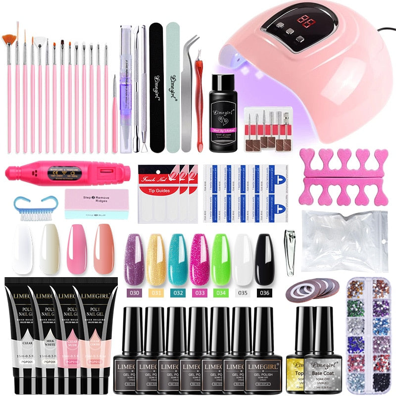 Nail Set With Nail Lamp Nail Dryer Nail Drill Machine Manicure Set Kit Poly Nail Gel Kit Polish Set Soak-off Nail Art Tools Sets