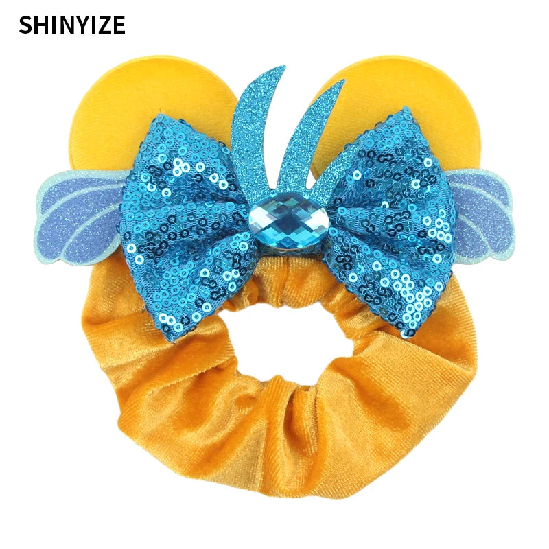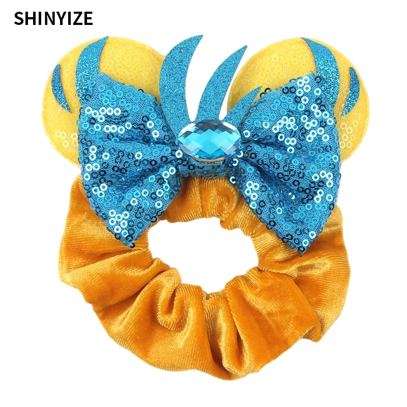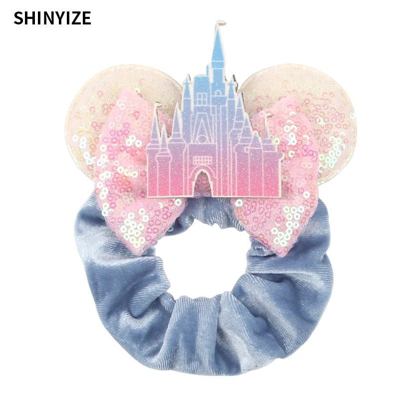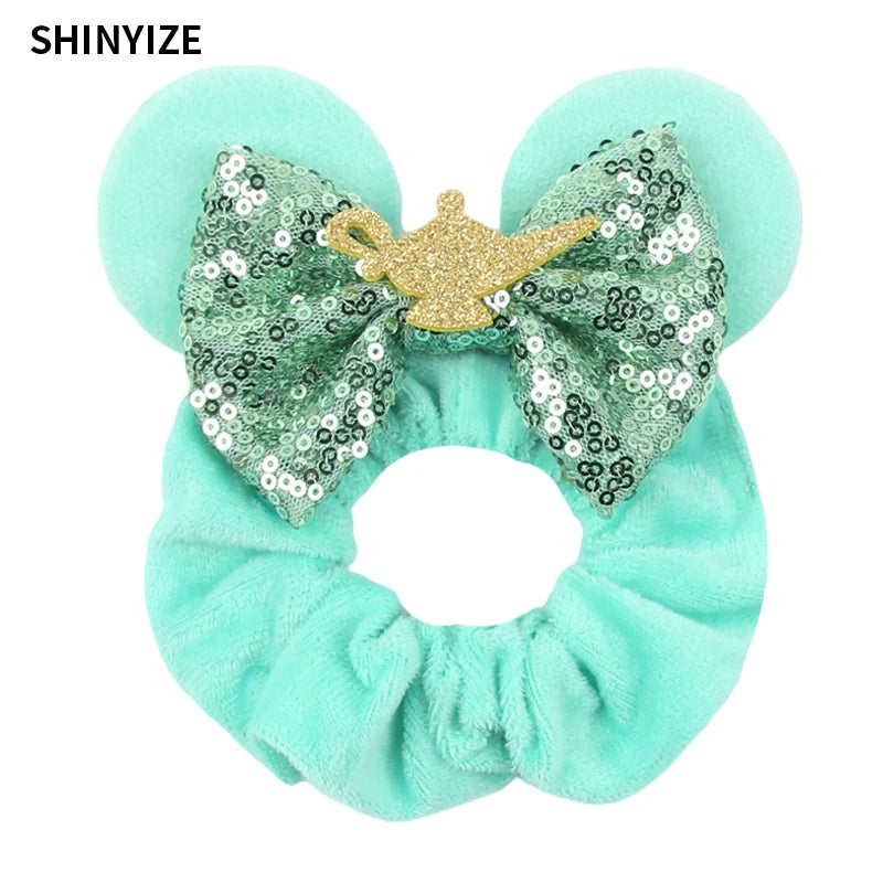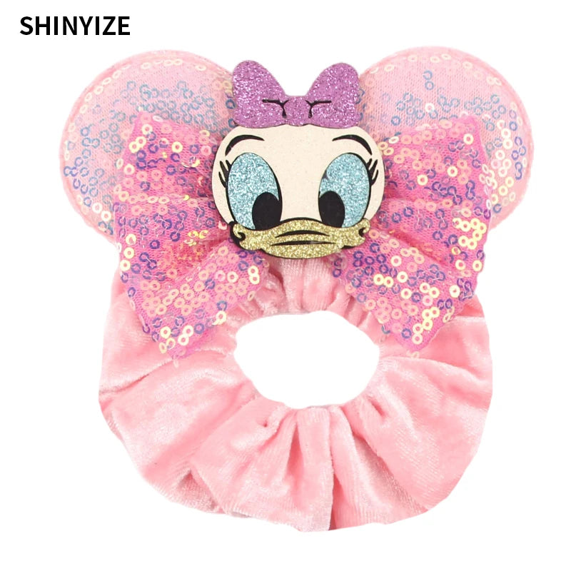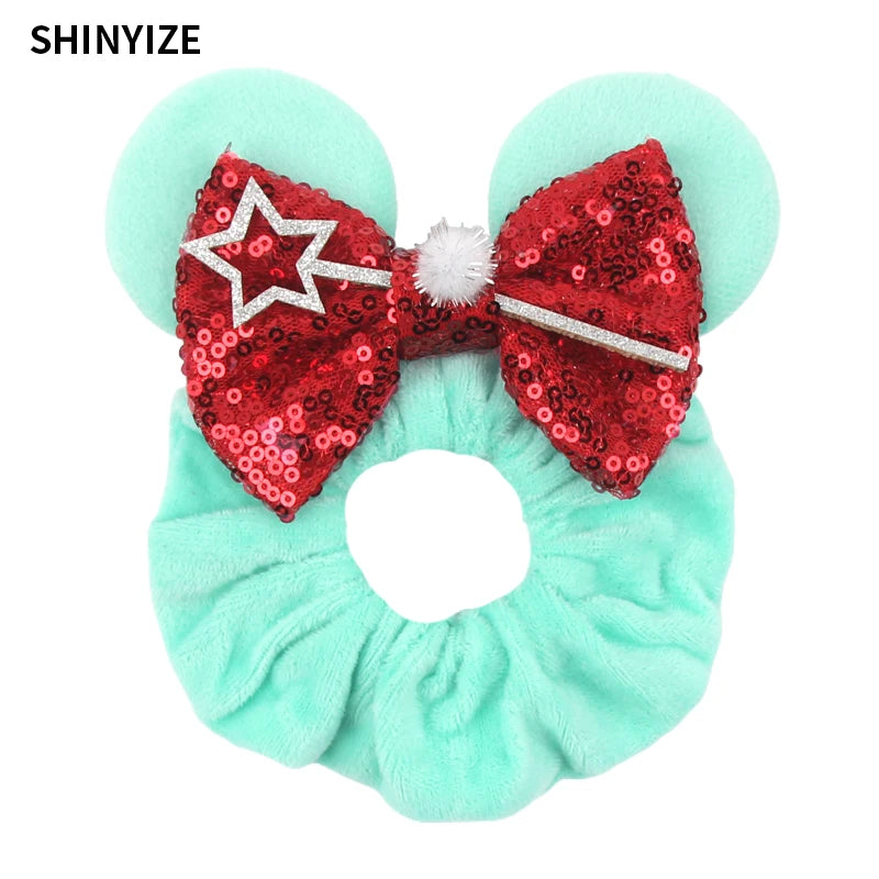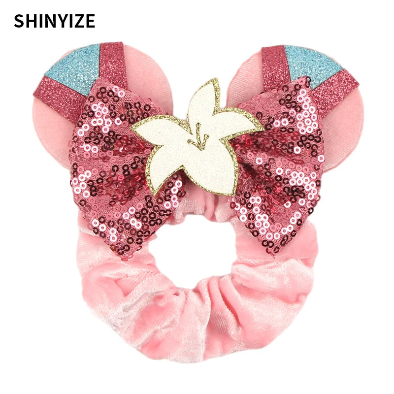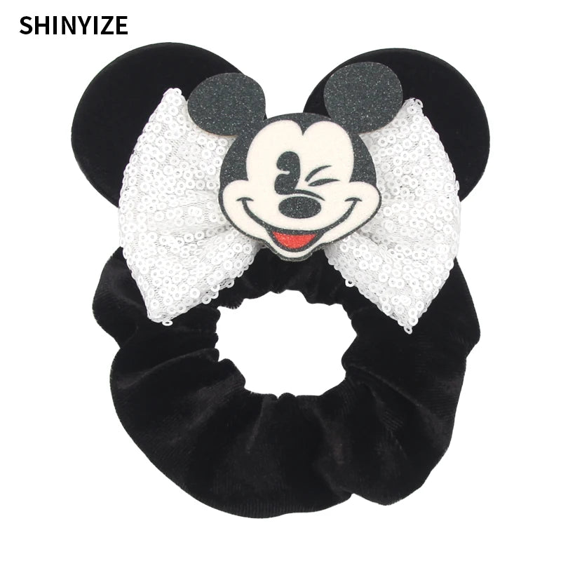 New Chic Disney Mickey Mouse Ears Hair Scrunchies Sequins 4"Bows Elastic Headband Women Velvet Girls DIY Hair Accessories Gift