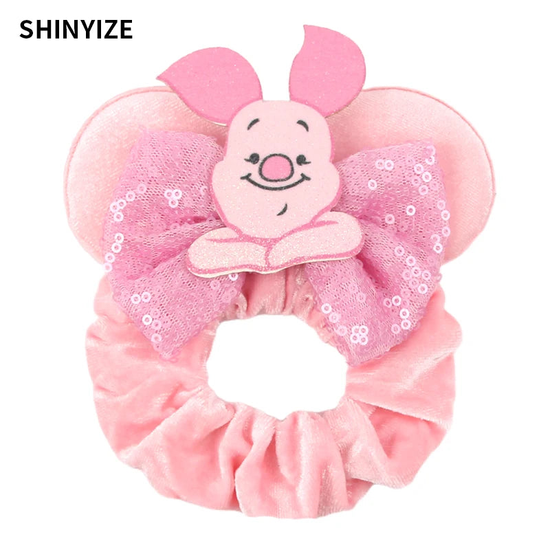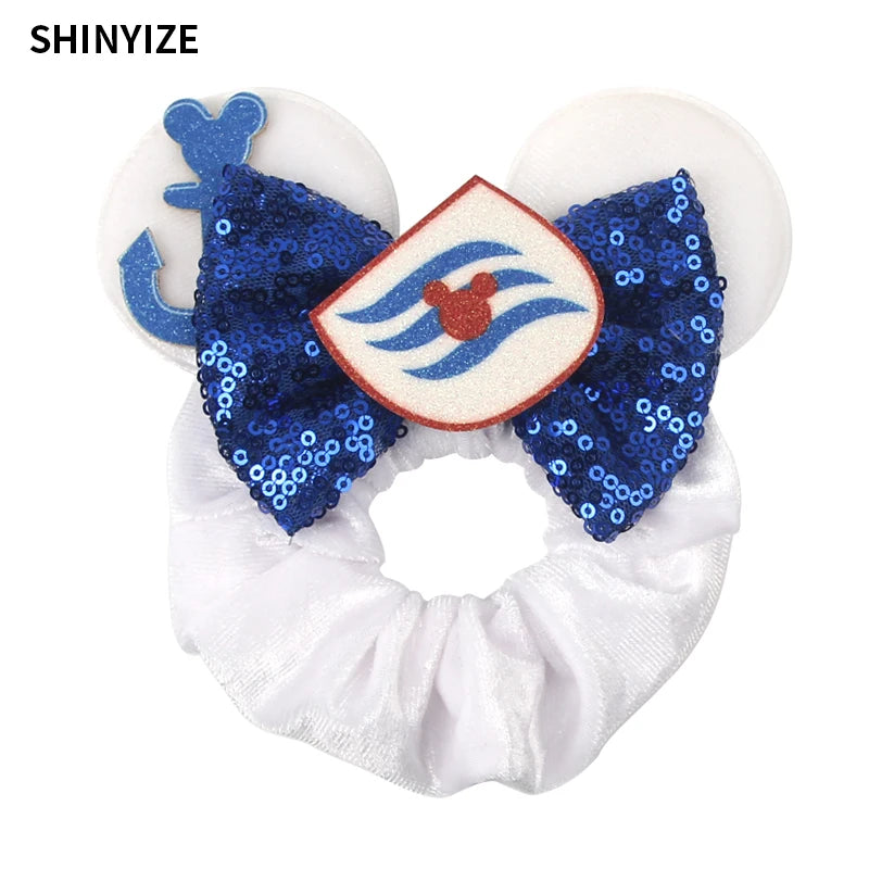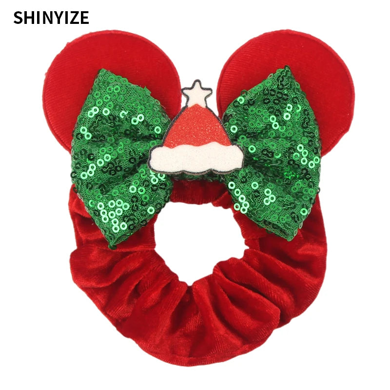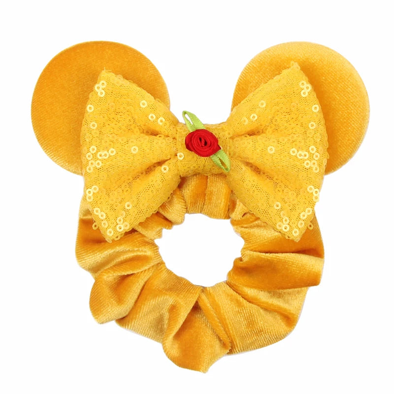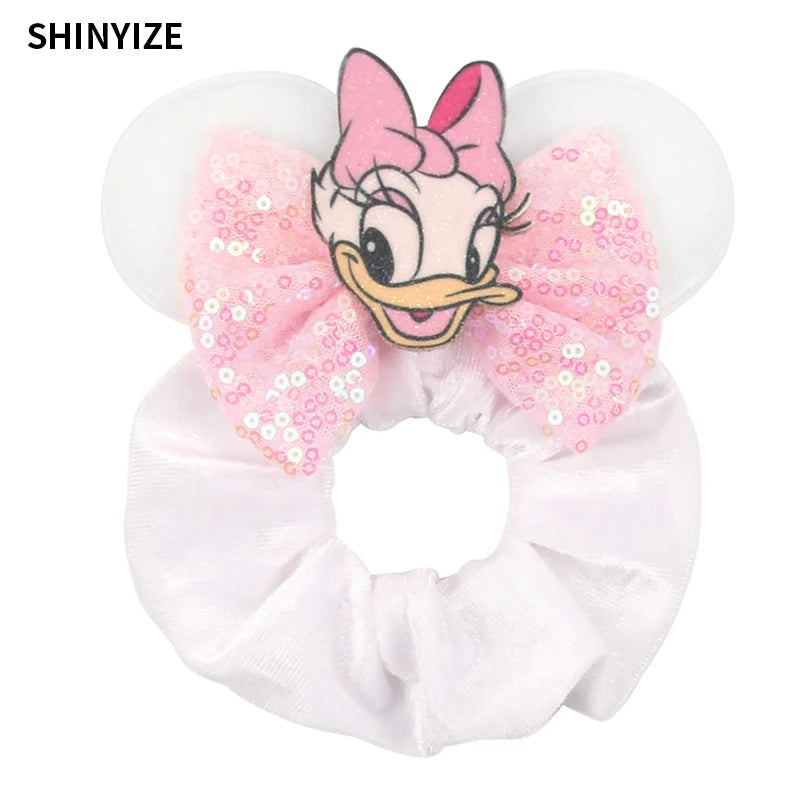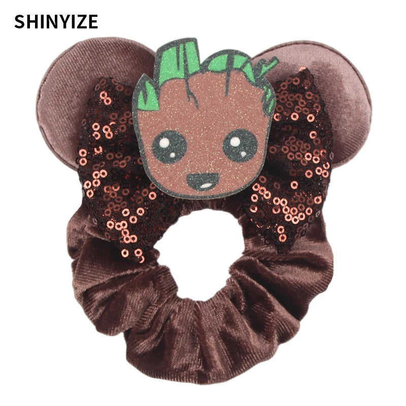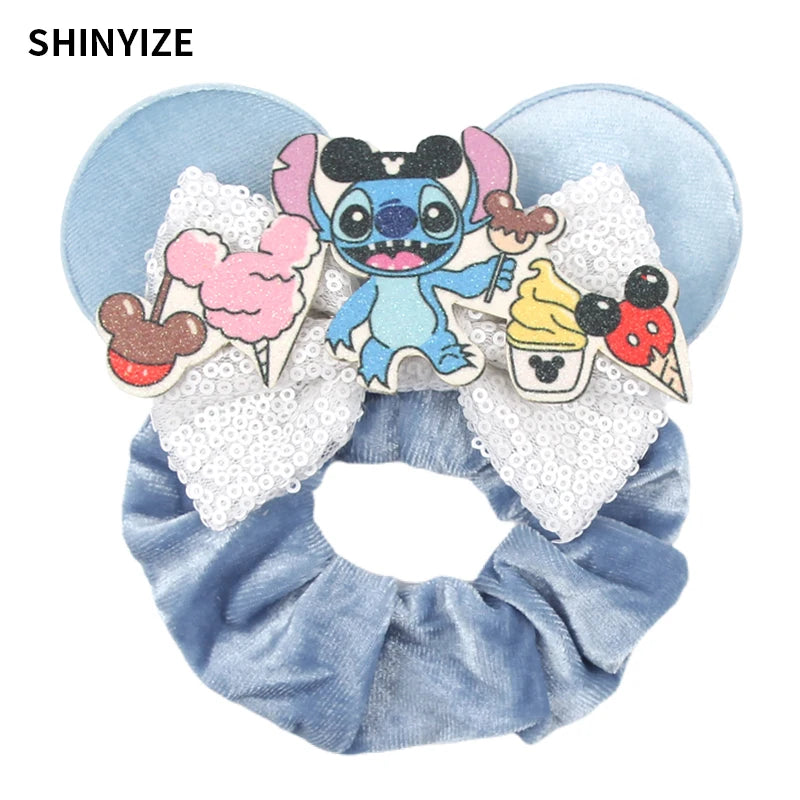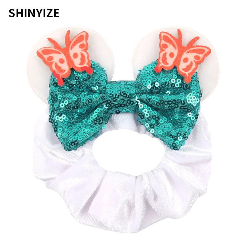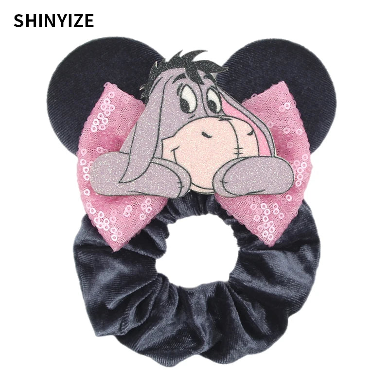 New Chic Disney Mickey Mouse Ears Hair Scrunchies Sequins 4"Bows Elastic Headband Women Velvet Girls DIY Hair Accessories Gift