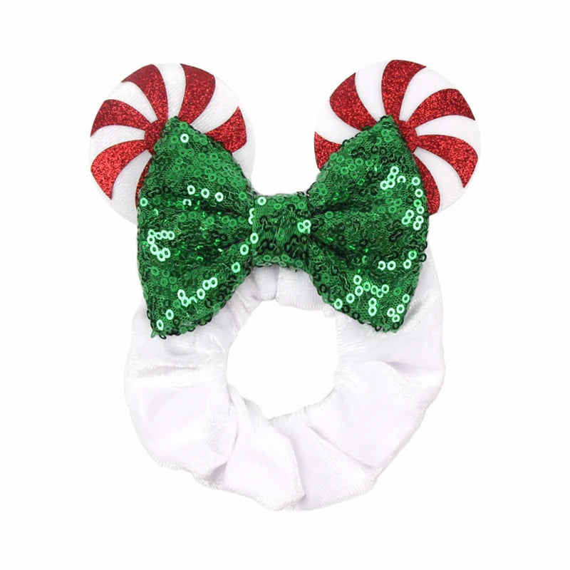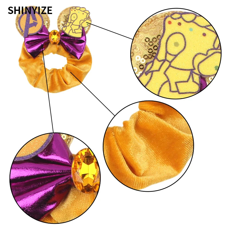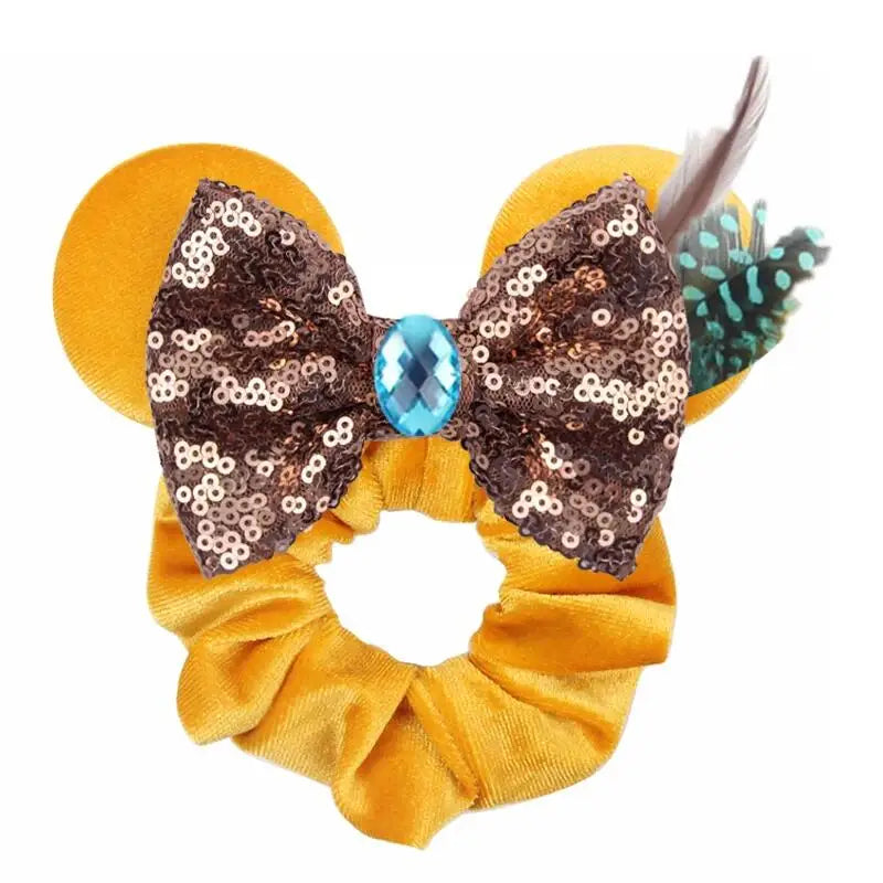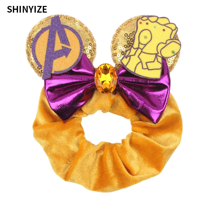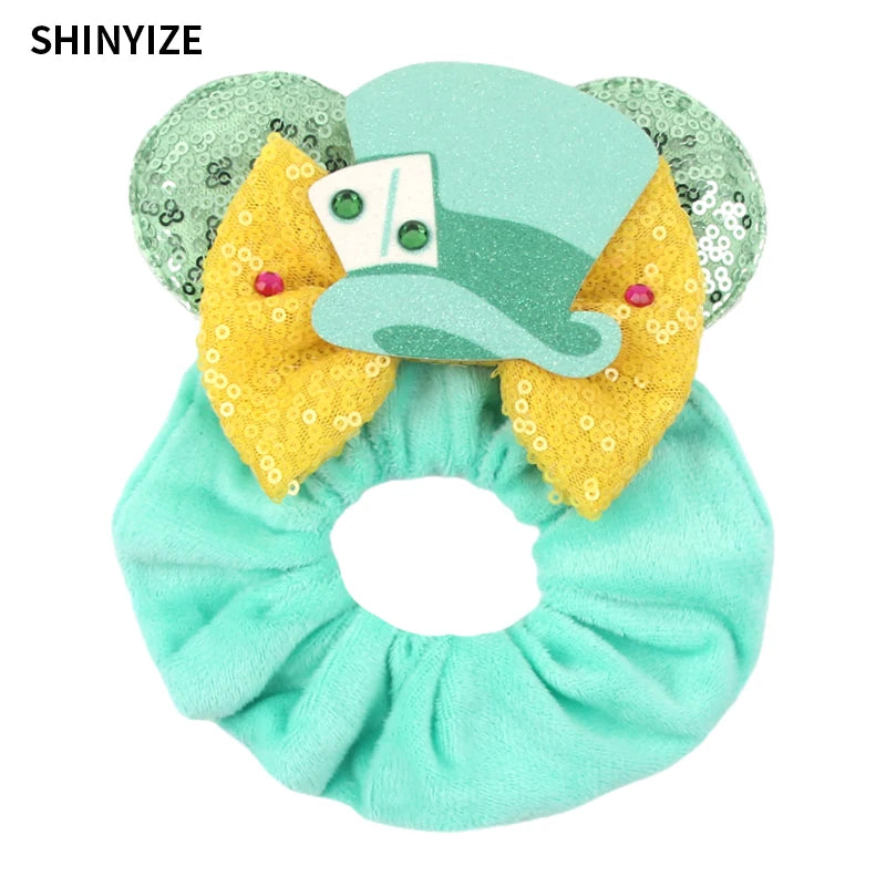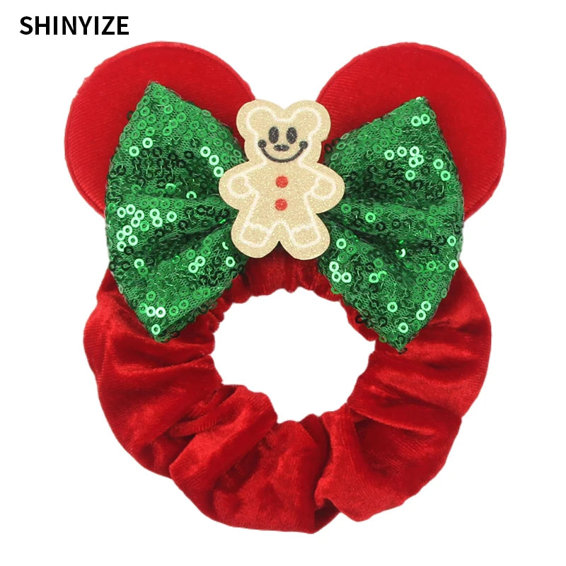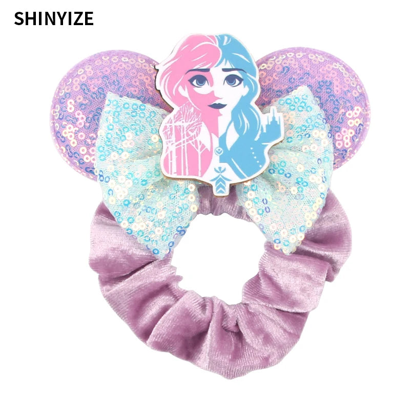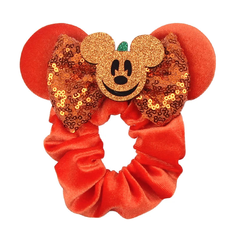 New Chic Disney Mickey Mouse Ears Hair Scrunchies Sequins 4"Bows Elastic Headband Women Velvet Girls DIY Hair Accessories Gift