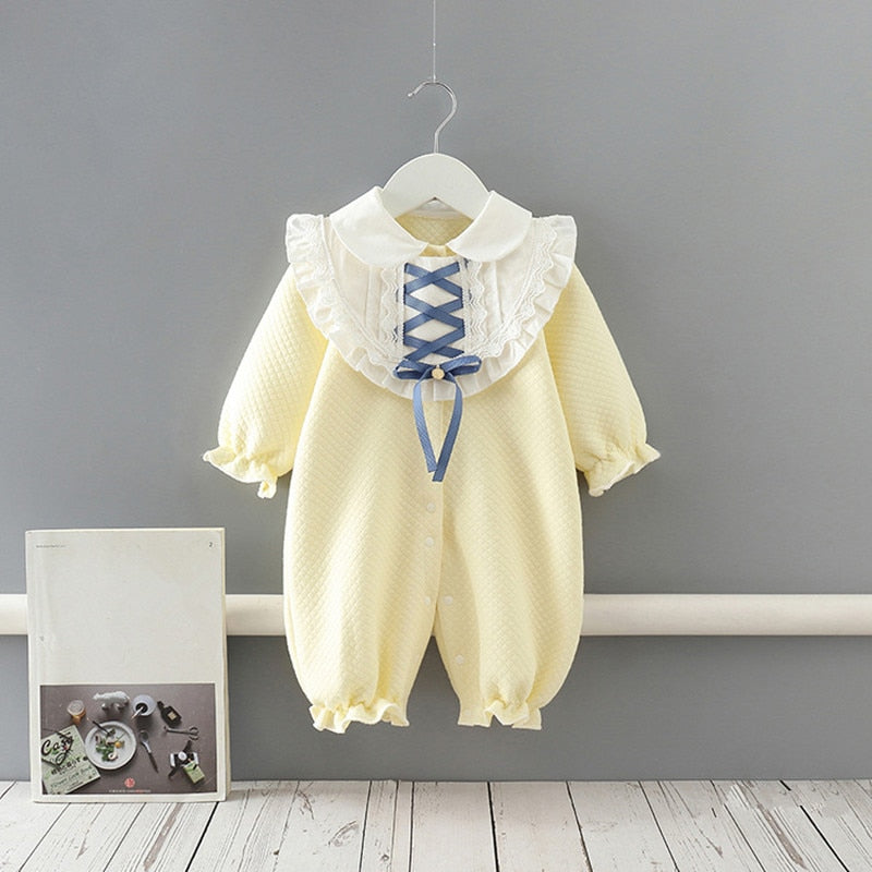 Newborn Baby costume rompers Clothes Winter Peter Pan Collar Girl Thicken Warm Comfortable Kids Rompers 0-2Y