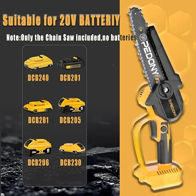 ● [Suitable for DeWalt 20V battery] Compatible with DeWalt 20V series battery, DCB202, DCB203, DCB204, DCB205, DCB206, etc. They only sell 6-inch mini cordless chainsaws without batteries.
