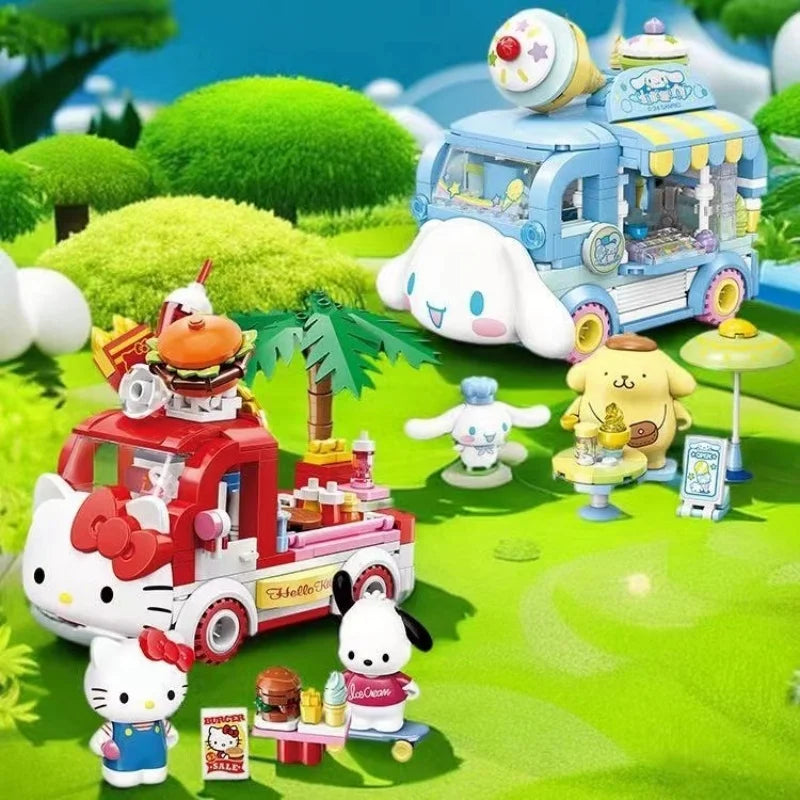 Sanrio Anime Figure Hello Kitty Assembled Building Block Kids Puzzle Toy Decorative Ornament Cartoon Doll Journey Food Car Model