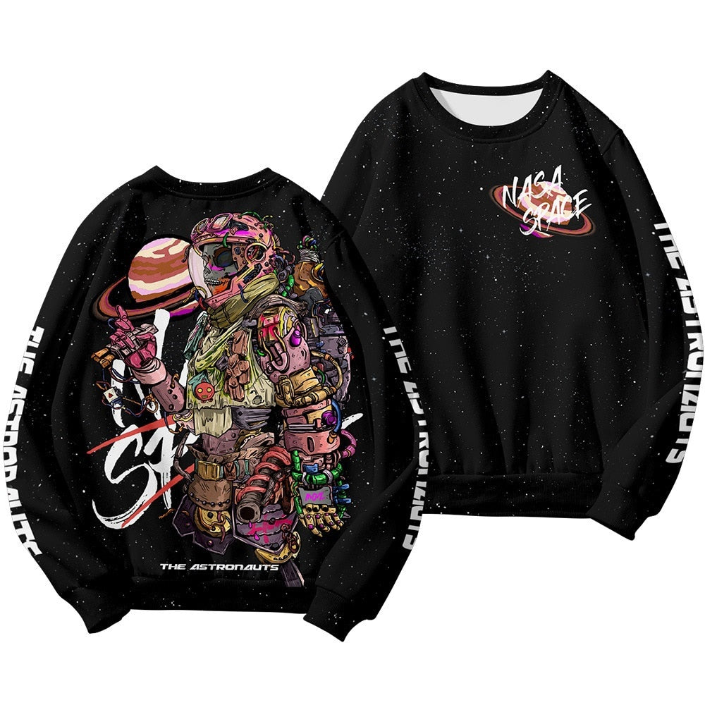 Sweatshirt Men Hoodies Casual Pullovers Autumn Winter Skeleton Astronaut Plus Size 6XL Clothes