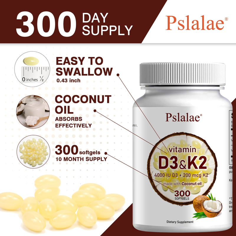 Vitamin D3 and K2 Softgels - Promote Calcium Absorption, Bone and Joint Health, and Improve Immunity - 300 Capsules