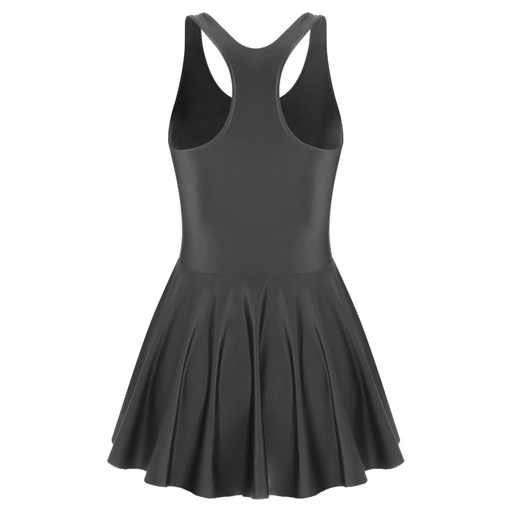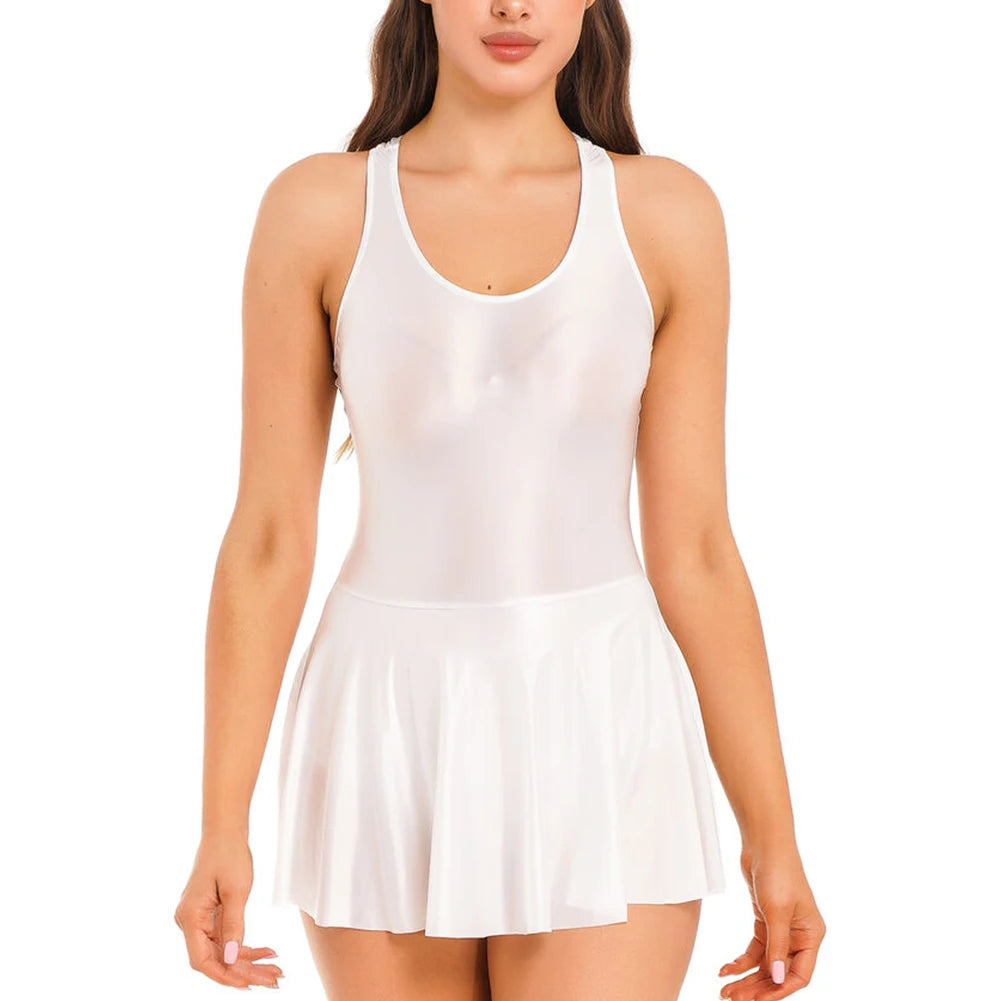 * Item Features:Women Glossy Stretchy Sleeveless Tank Dresses Solid Color Athletic Tennis Dress Nightdress Sleepwear