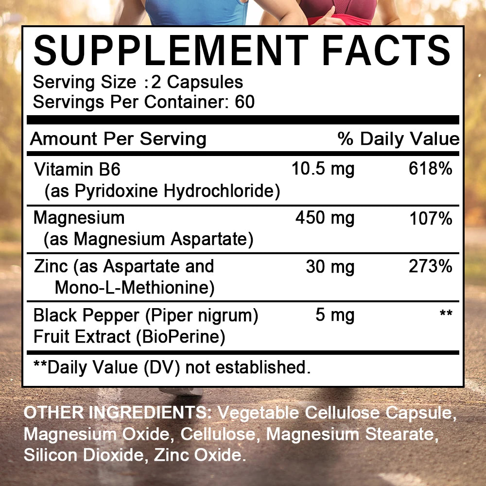 Proper Ratio: Each dose provides zinc (30 mg), magnesium (450 mg), vitamin B6 (10.5 mg) and an effective/recommended dose of piperine (5 mg), which has been shown to enhance the absorption of zinc, magnesium and B vitamins.