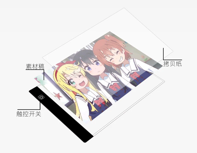 Terms: 100% new (High Quality) Size: 300*200*3.5mm(about) Material: Plastic ,Acrylic Light source: no flicker super bright environmental LED Power: 2.8W Input: AC100-240V50 Output voltage: Android USB 5V Packing: 1 PC in opp bag (Copy station ,Instruction manual, Data line) Suitable Age: >3 Year A4 refers to A4 level dimming, which refers to the light brightness level, not the size of A4 paper!!!