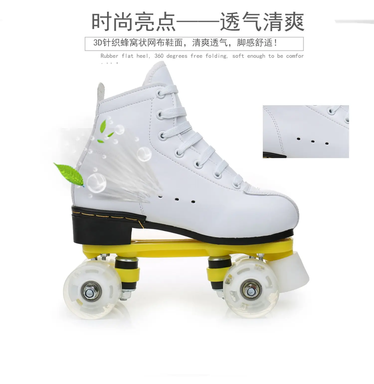 Adult Double Row Roller Skate Shoes Black White Outdoor 4 Wheels Training Shoes Man Woman Sports Patines Shoes