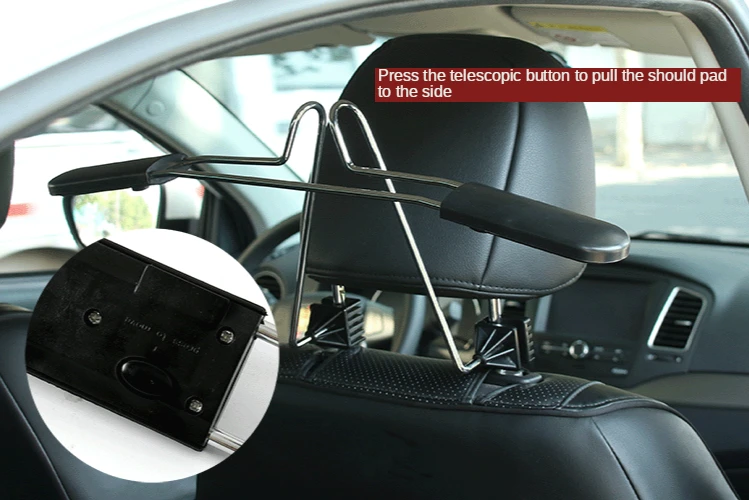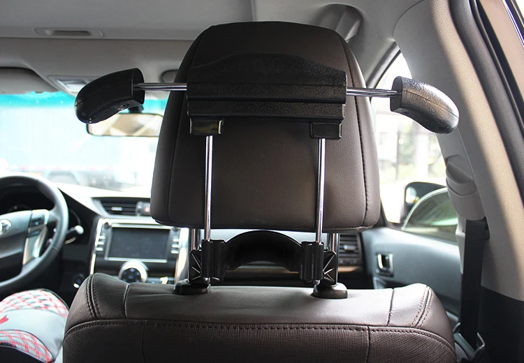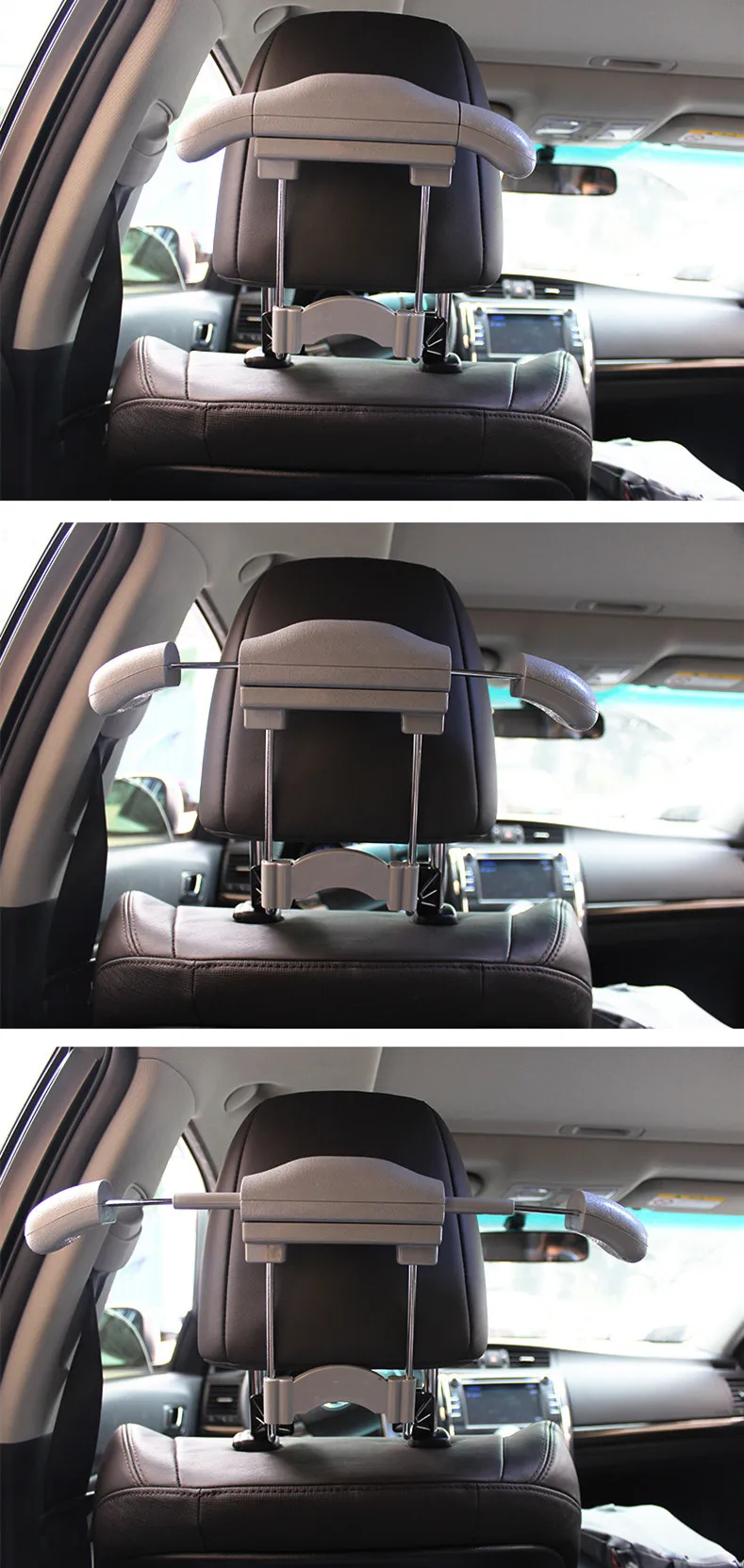 2. Move closer to the middle to make the distance between the two hanger buckles,The distance from the two pillars less than the headrest so that the hanger can be fastened to the headrest bracket.