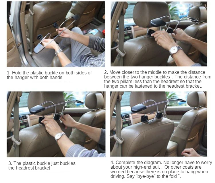 4. Complete the diagram. No longer have to worry about your high-end suit,Or other coats are worried because there is no place to hang when driving. Say ''bye-bye'' to the fold ''.