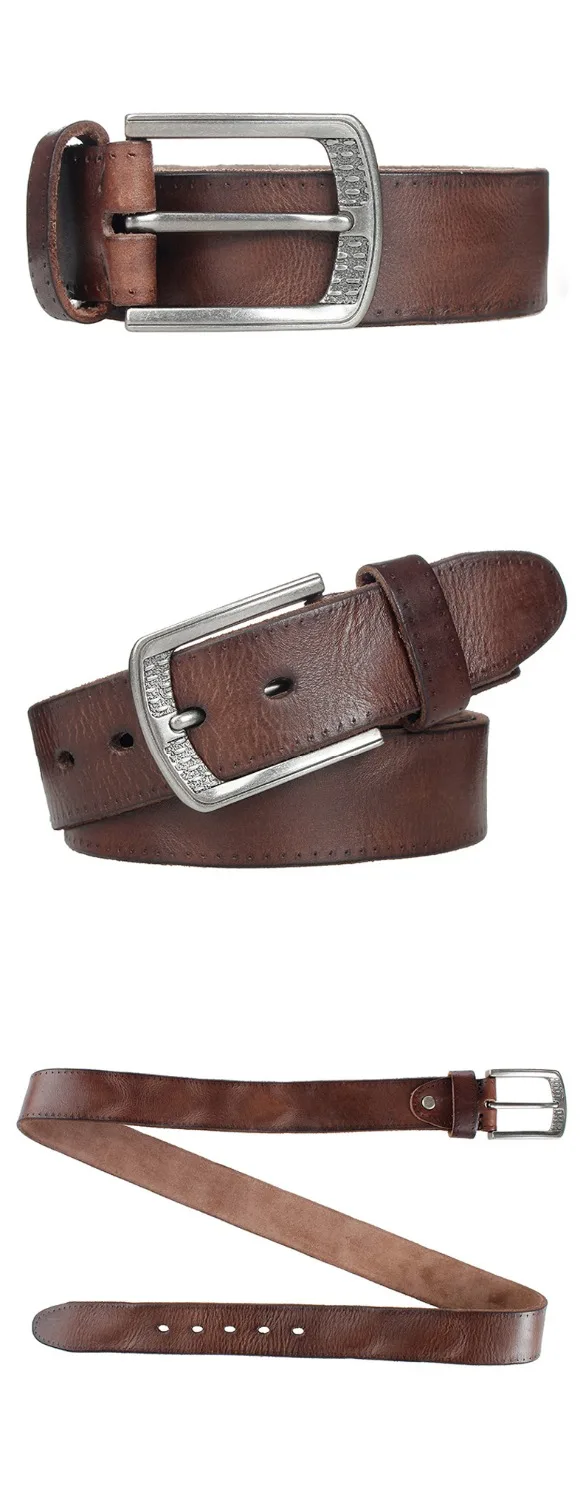 MEDYLA Fashion Brand Men's Genuine Leather Belt High-quality Alloy Buckle Casual Retro Brown Long Belts 105cm to 150cm Dropship