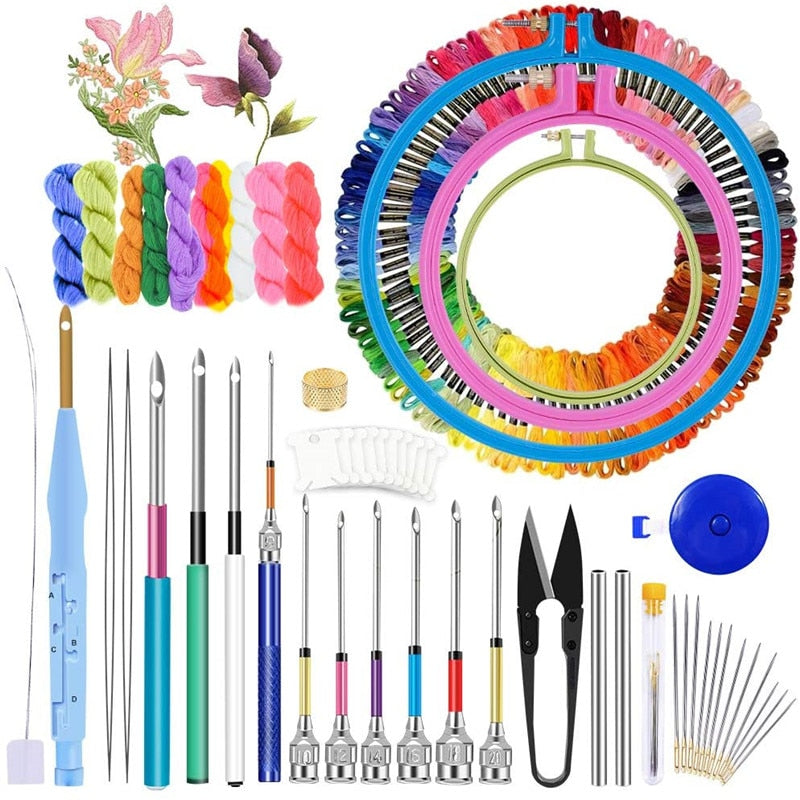 MIUSIE 156 Pcs Embroidery Thread DIY Craft Needlework Cross Stitch Embroidery Hoop Knitting Sewing Punch Needle Kit For Beginner
