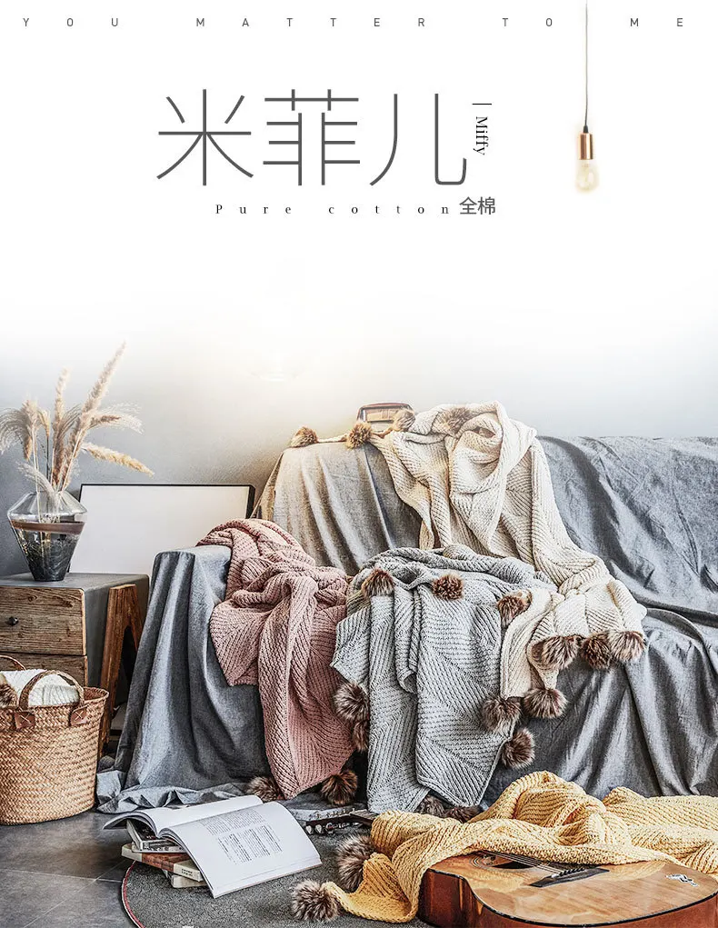 REGINA Elegant Pompom Cozy Chenille Knitted Throw Blanket