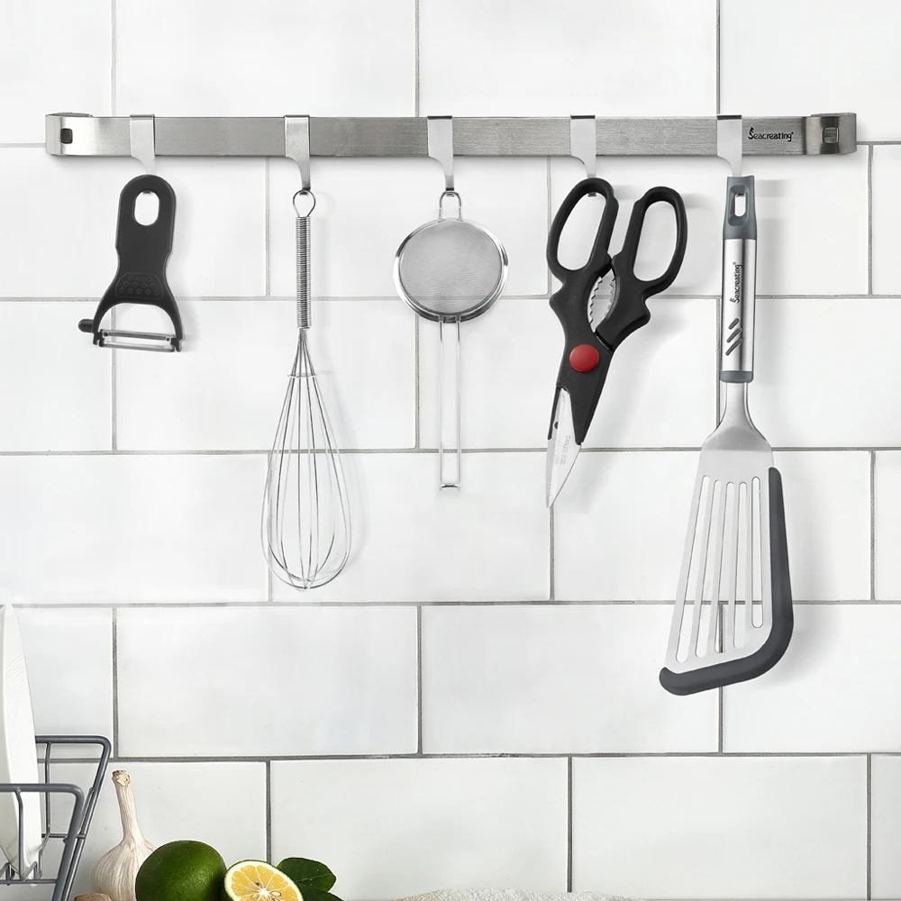 Easy Installation: This utensil hanger rack comes with mounting hardware and instructions so you can set up your utensil and organize your kitchen right away!