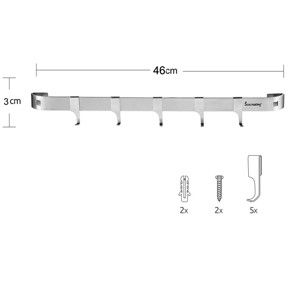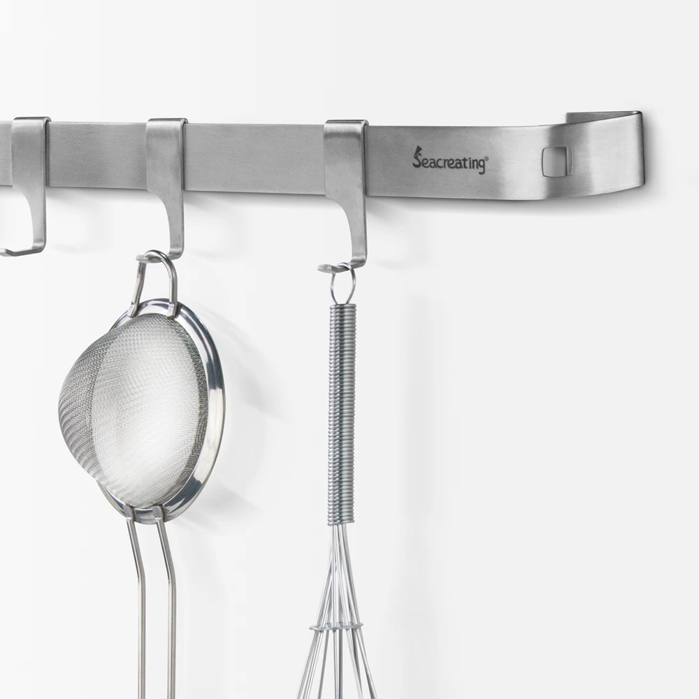 Powerful Utensil Hanger Rack: This utensil hanger rack is covered in an elegant, satin finished, high grade stainless steel that will compliment your kitchen décor.