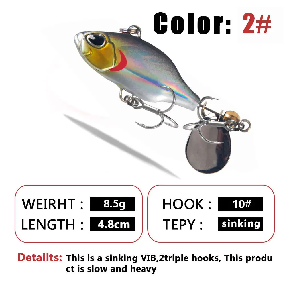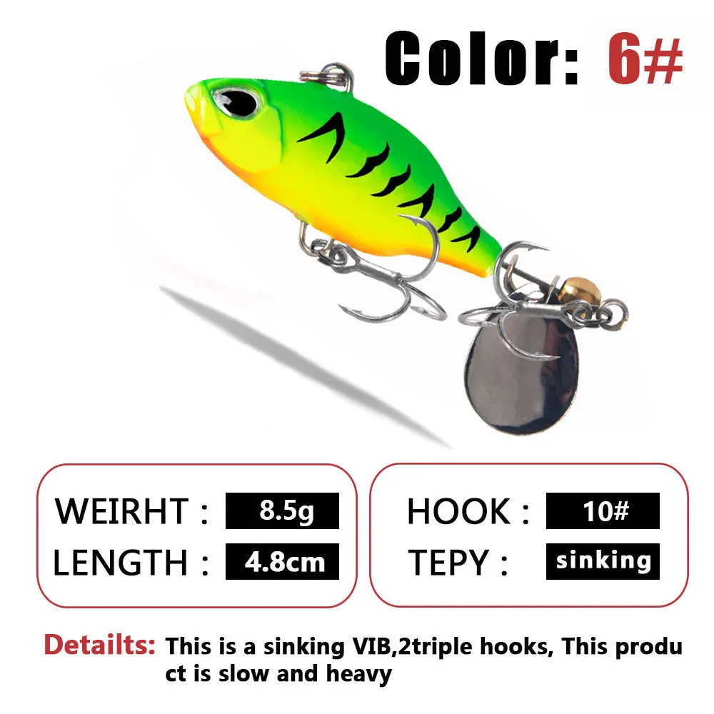 1Pcs Rotating Metal VIB Vibration Bait Spinner Spoon Fishing Lures 4.8cm 8.5g Jigs Trout Winter Fishing Hard Baits Pesca