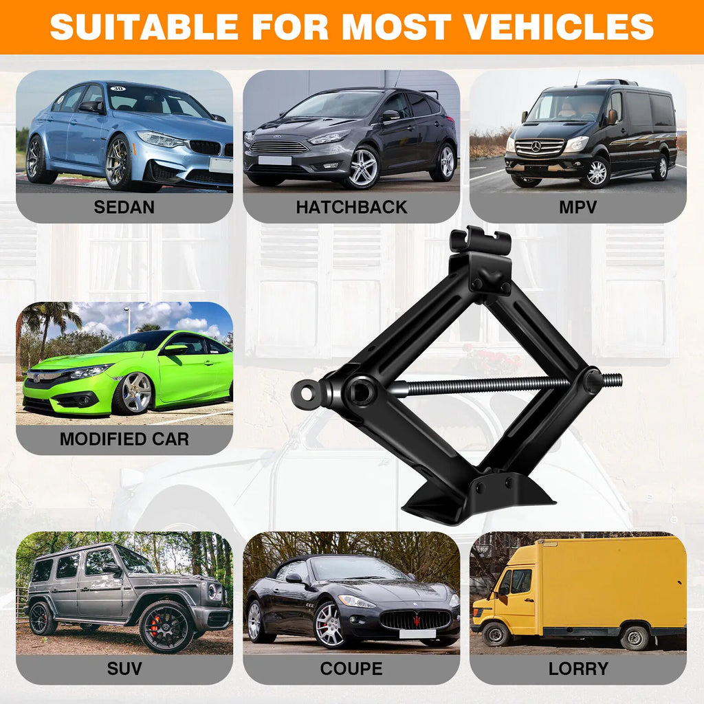 2 Ton Car Scissor Jack with Crank Handle, Lifting Range 11-39cm, Carbon Steel, Tire Repair Kit for Toyota Camry Corolla Prius