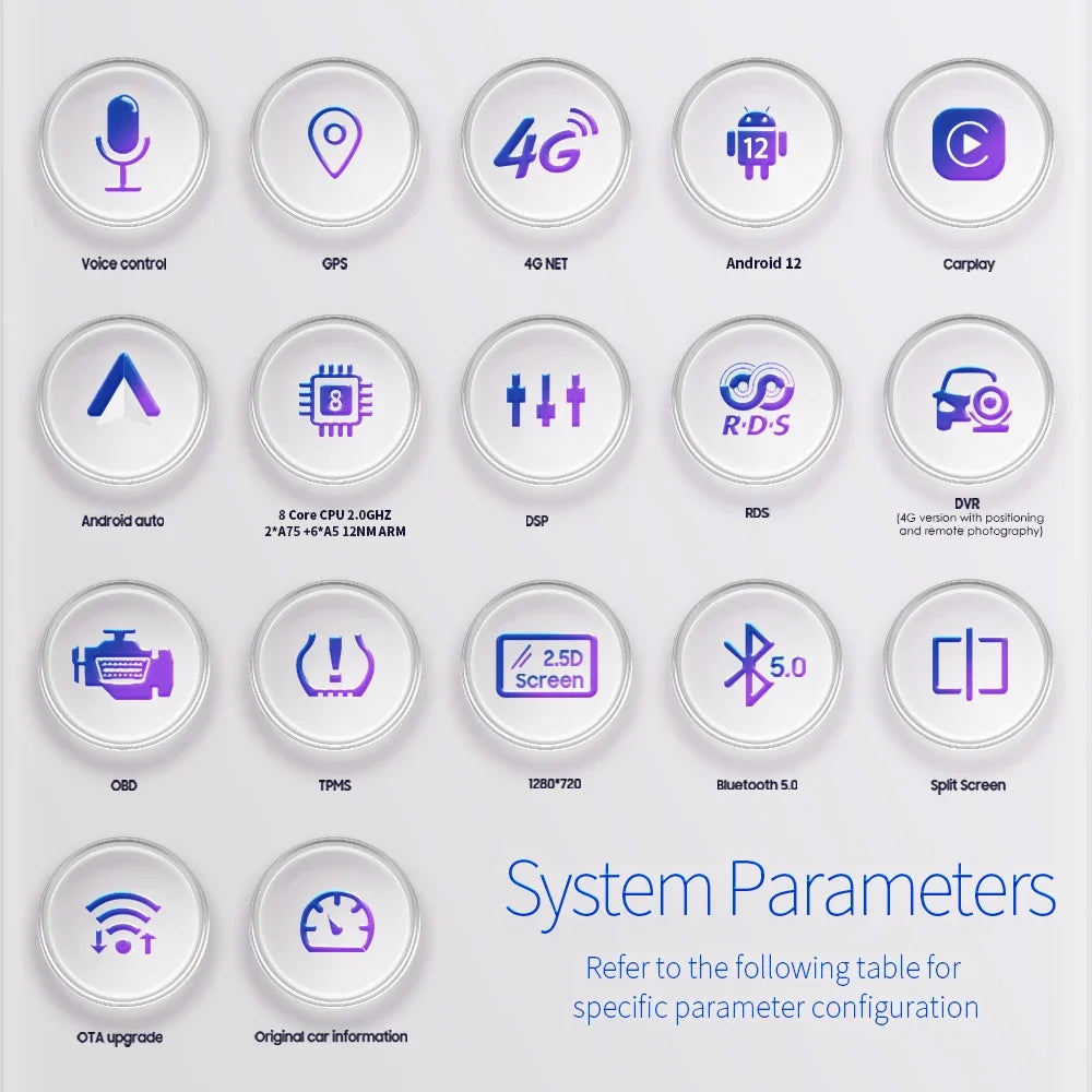 Special Features: Built-In Speaker/Microphone,wifi function,Support steering wheel control,Support 4G Network,Built-in GPS,Mobile Phone,MP3 players,Voice Control,dsp,CarPlay,android auto,Reversing Input,Split Screen