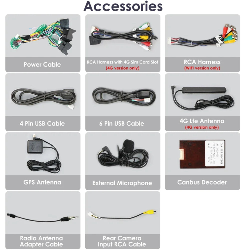 Standard Accessories: which ship with the head unit together(but please pay attension to the red words of accessory whether can get or not which depends on the item option you choose to buy it)