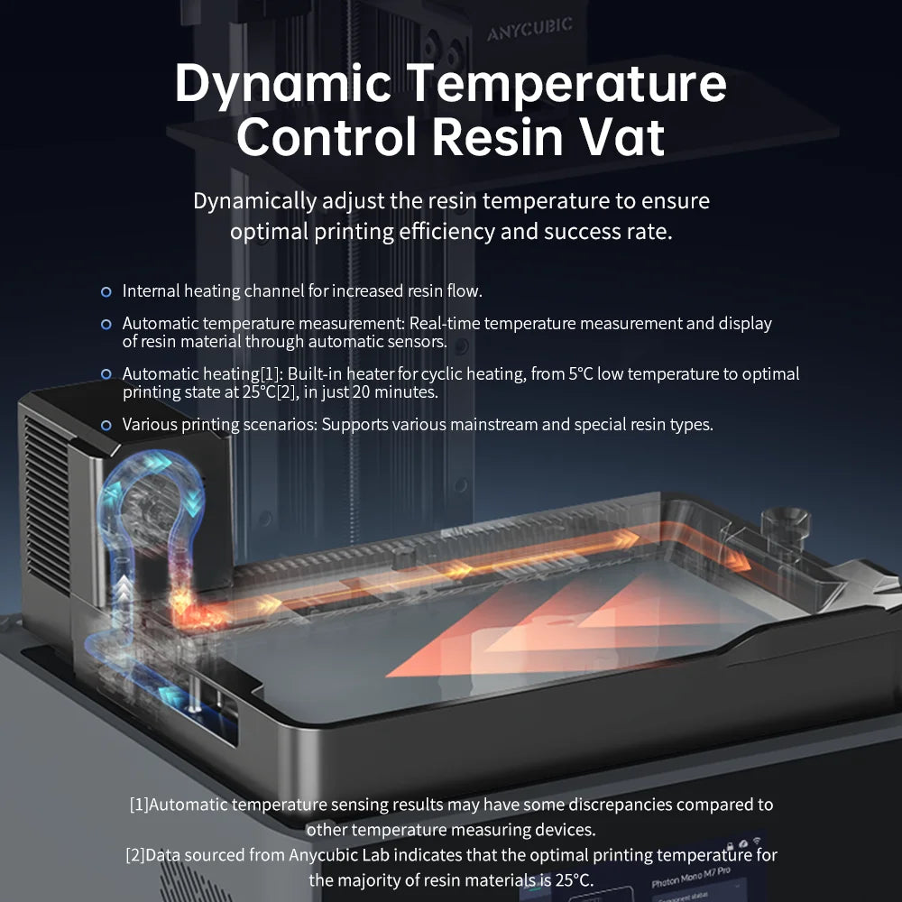3.Do i need to buy high speed resin for the fast prints? Or this can print fast with the normal resin?Photon Mono M7 Pro can support both High Speed Resin and Standard Resins. The print speed is different. Max Speed 130mm/hr, 0.1mm Layer With Standand Resin; Max Speed170mm/hr, 0.1mm Layer With High Speed Resin.