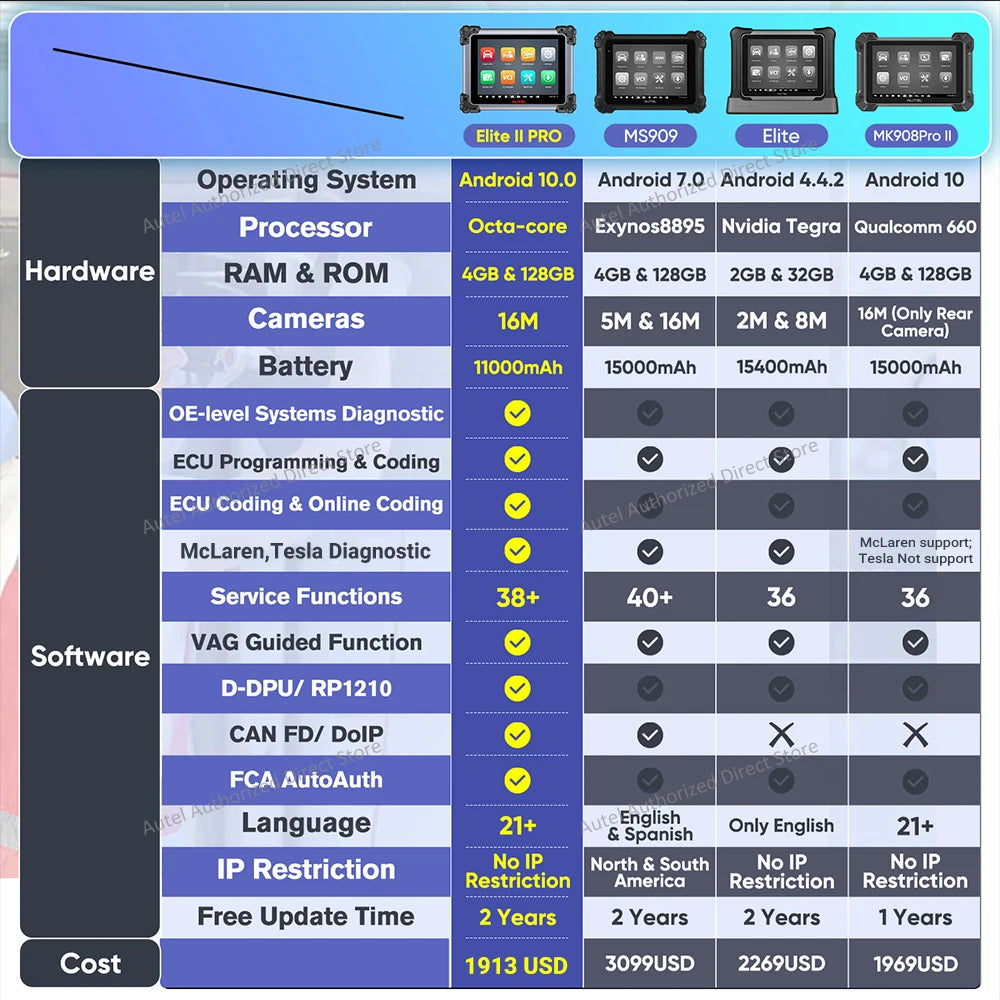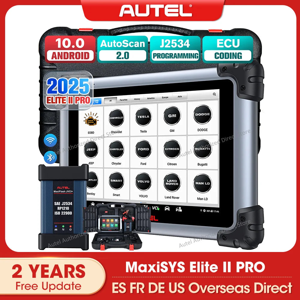 The 2025 recent added functions of Autel scanner Elite 2: ➊Wider Car Coverage with CANFD & DoIP, 150+ Brands Including Tesla, McLaren ➋5X Faster Diagnostics with updated MaxiFlash VCI, Android 10, Auto Scan 2.0 ➌OE-Level All Systems Diagnosis same as Ultra ➍J2534 Programming & Coding ➎40+ Service, All System Diagnosis ➏3000+Active Test ➐Refresh Hidden Features ➑Component Match & VAG Guided ➒2 Years Free Update. Autel Elite 2 is absolutely an ideal solution for car repairs.