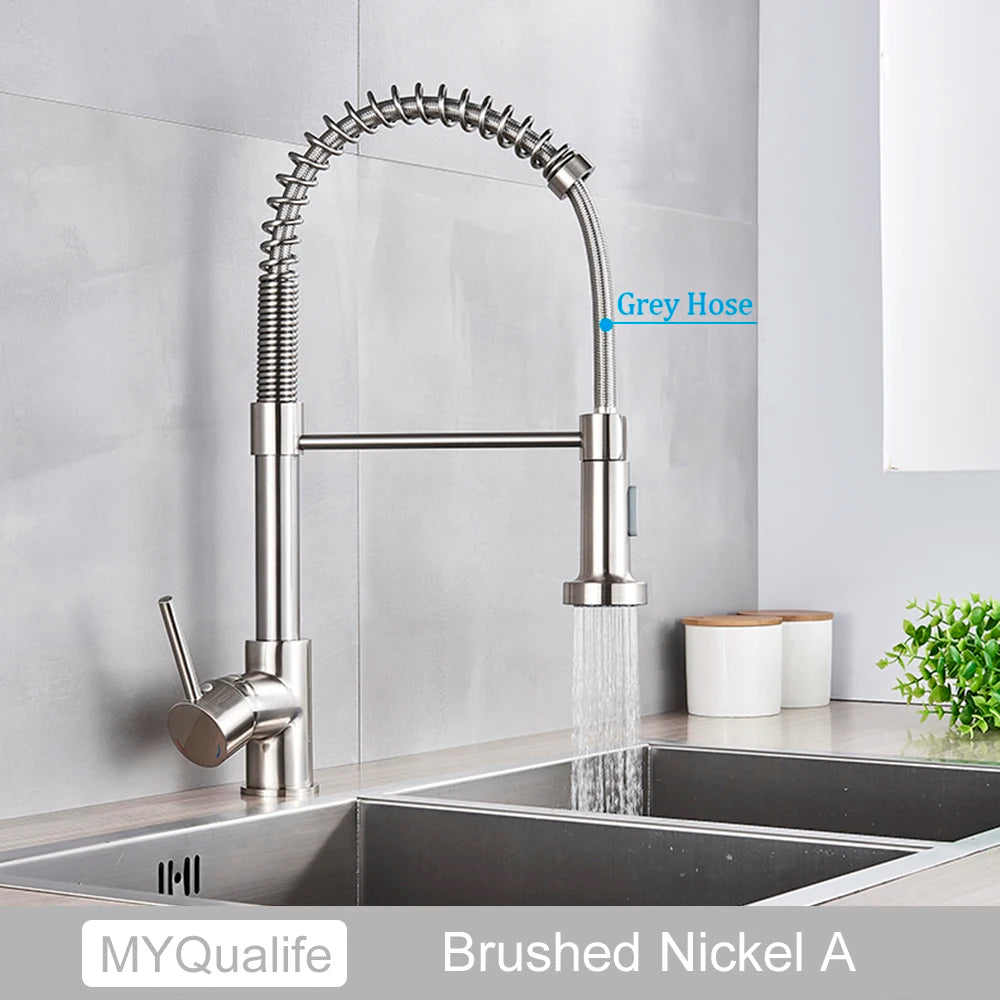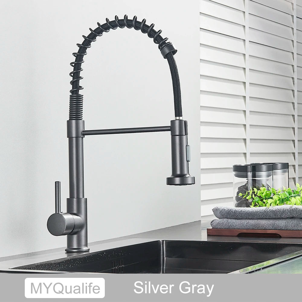 Pull Down Kitchen Sink Faucet One Handle Spring Hot and Cold Water Tap Kitchen Crane