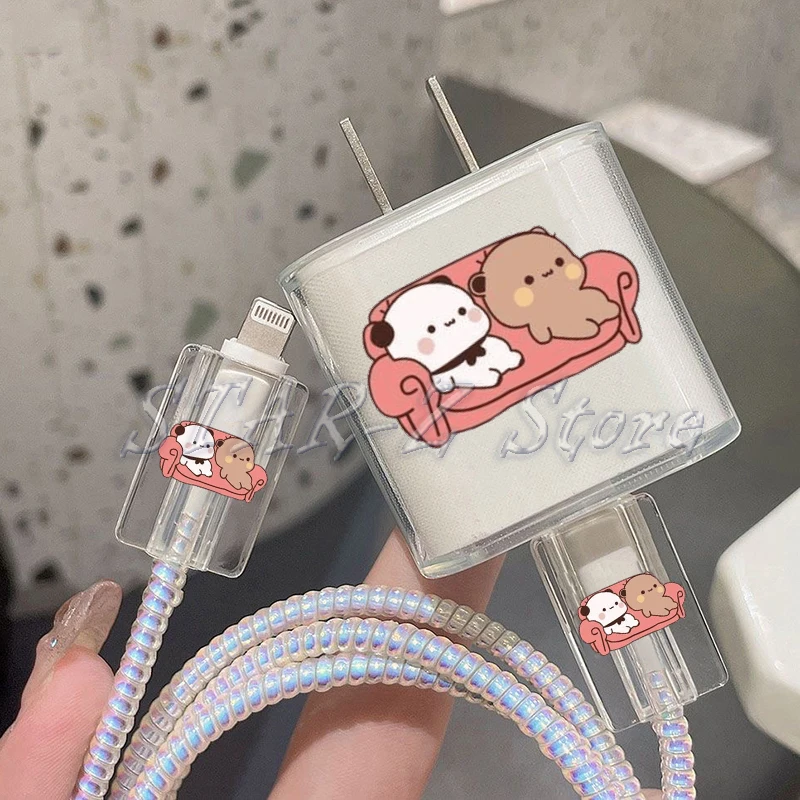 Bubu Dudu Couple Baby Bear Panda Protection Case for IPhone 15 14 13 Pro Max 18/20W Charger&Charging Protector Data Wire Winder