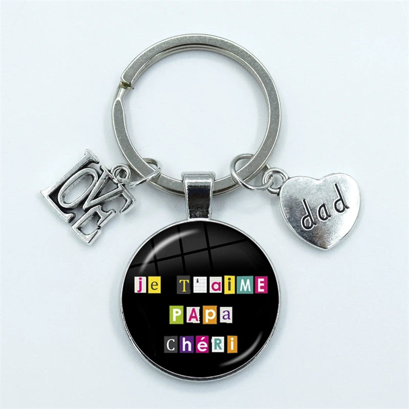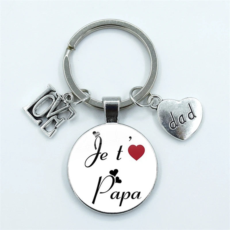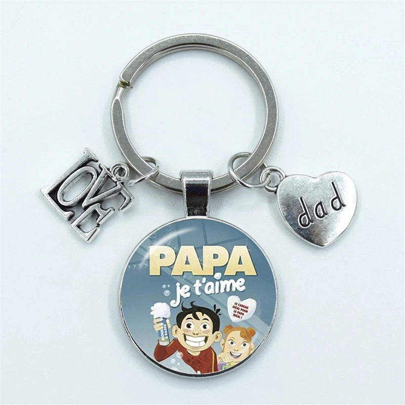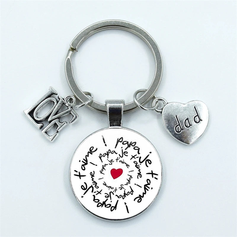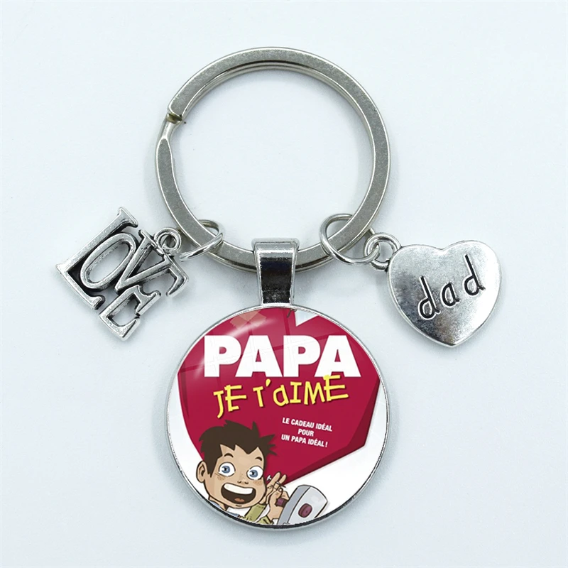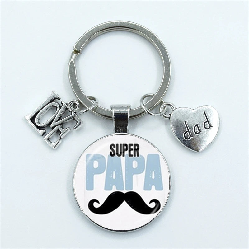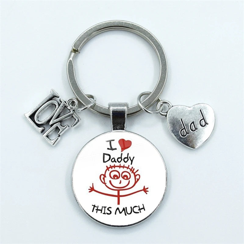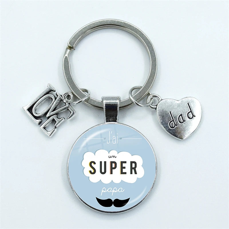 I Love Dad Keychain My Dad Is A Super Hero Pendant Glass Dome Cabochon Key Ring Father's Day Best Gift