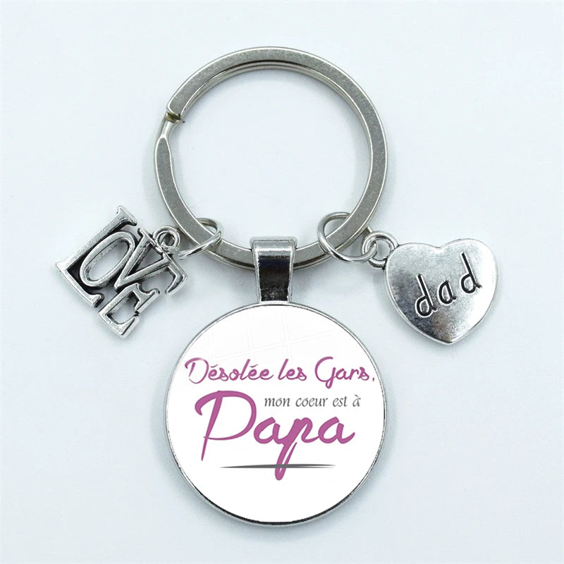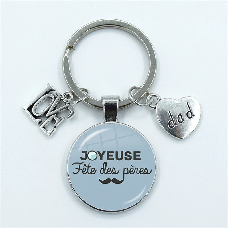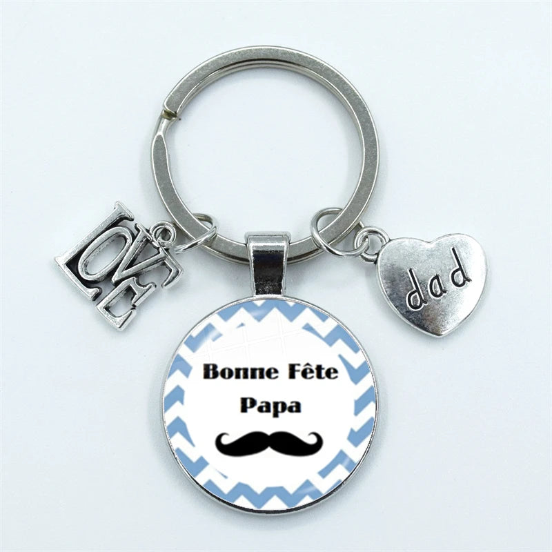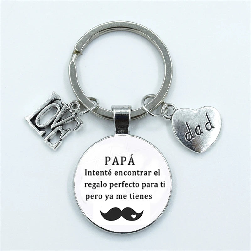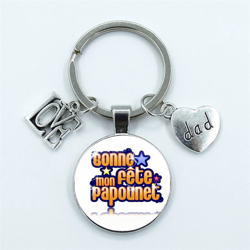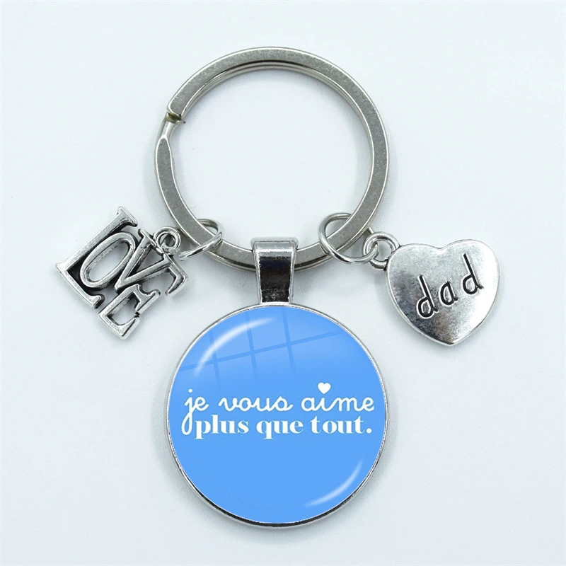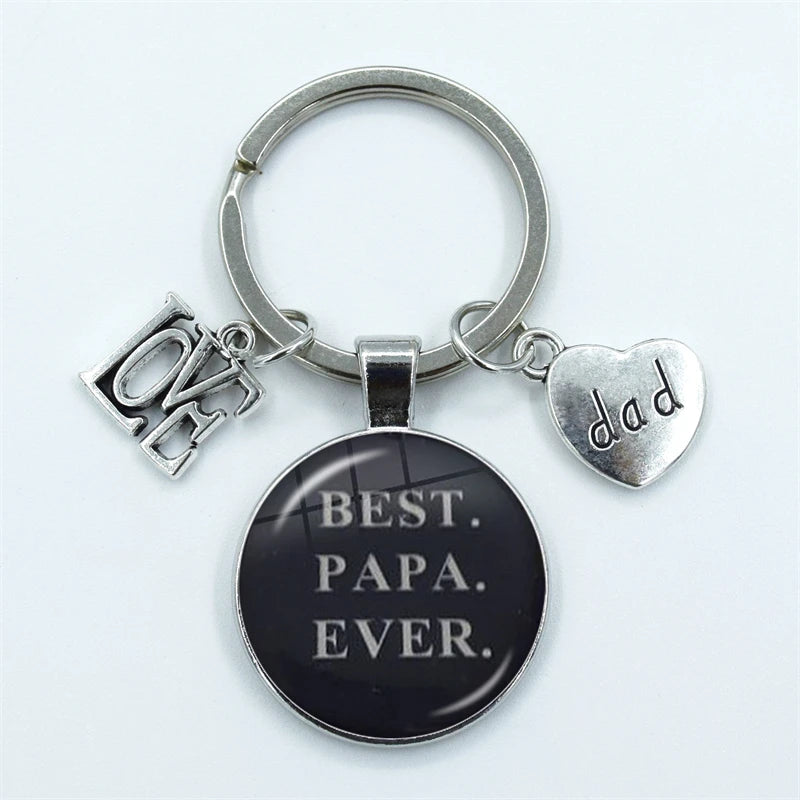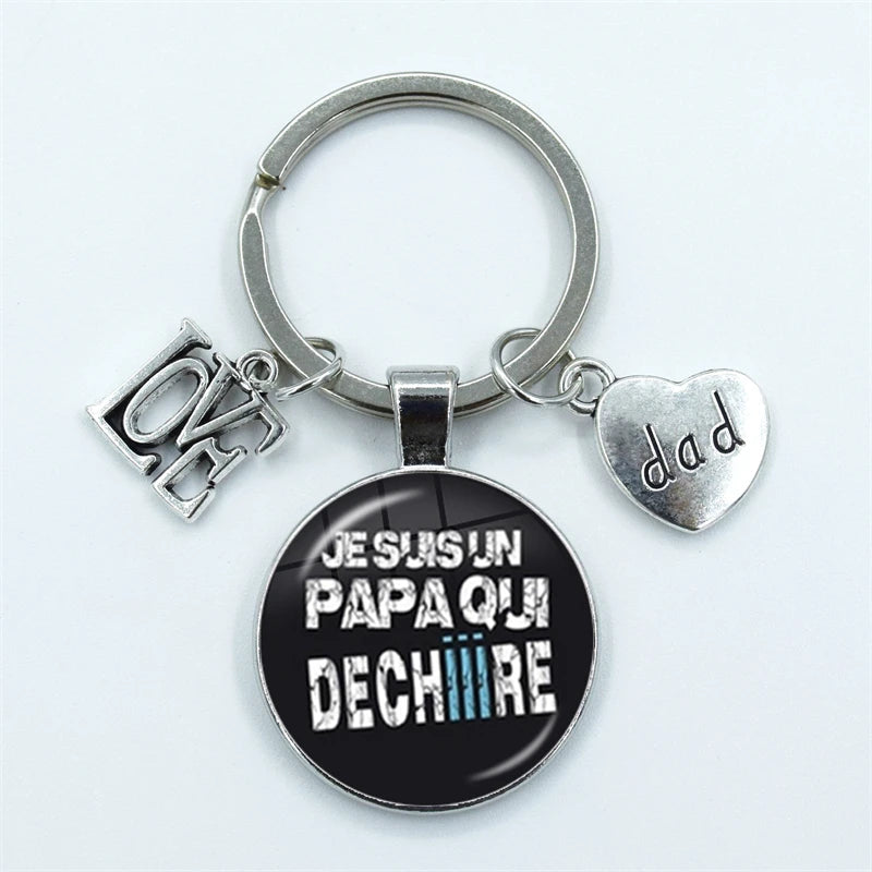 I Love Dad Keychain My Dad Is A Super Hero Pendant Glass Dome Cabochon Key Ring Father's Day Best Gift