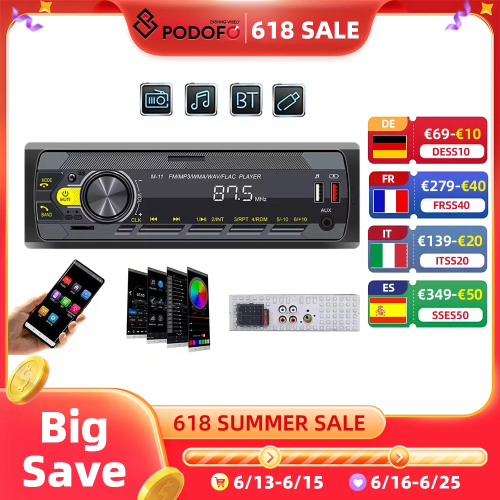 Podofo In-Dash 1DIN MP3 Player 12V Remote Control FM Car Radio Bluetooth Audio Music Stereo USB/SD/AUX-IN Support TF Card RCA