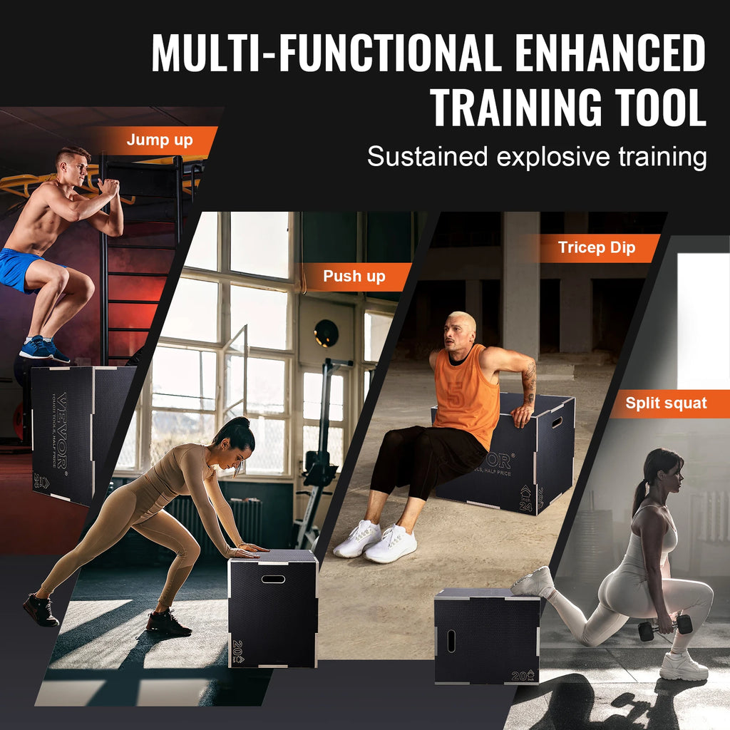 Multiple Sizes and Heights: You can choose from various sizes and heights to suit your specific needs. Whether you're a beginner or a professional, this box is great for home gyms. The three adjustable heights let you take on extra challenges and perform exercises like box jumps and step-ups to target different muscle groups and enhance core stability.