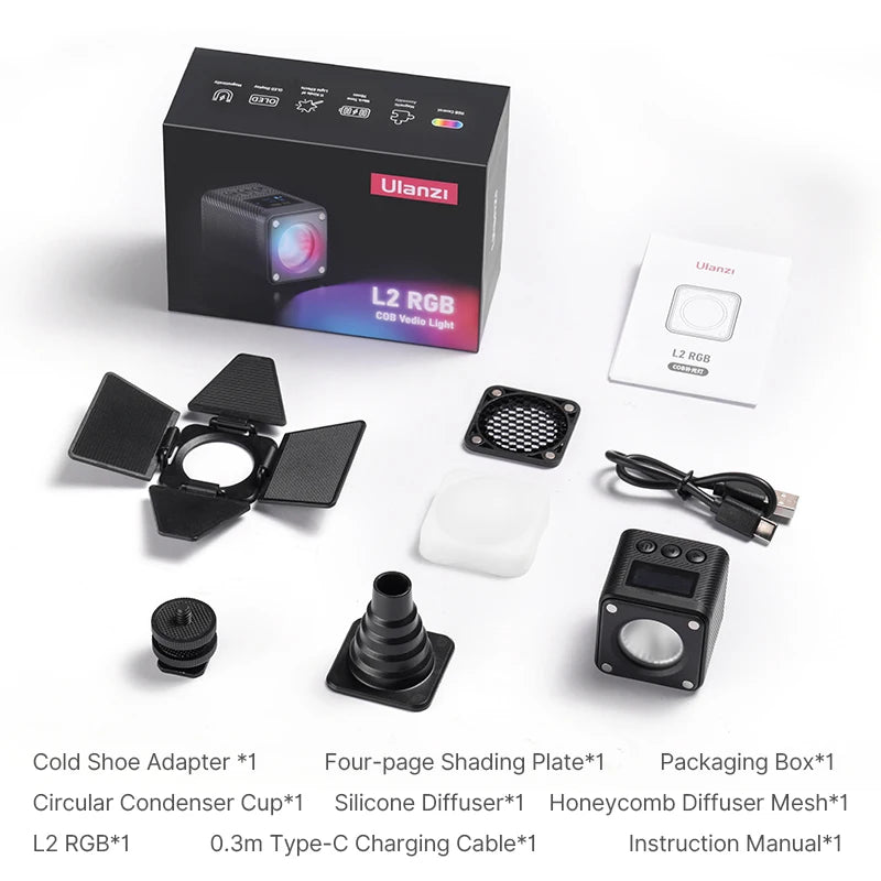 Ulanzi L2 RGB Mini Magnetic Video Light for Gopro Hero 12 11 10 9 8 7 6 DSLR LED Camera Light With Honeycomb Diffuser lamp Kit