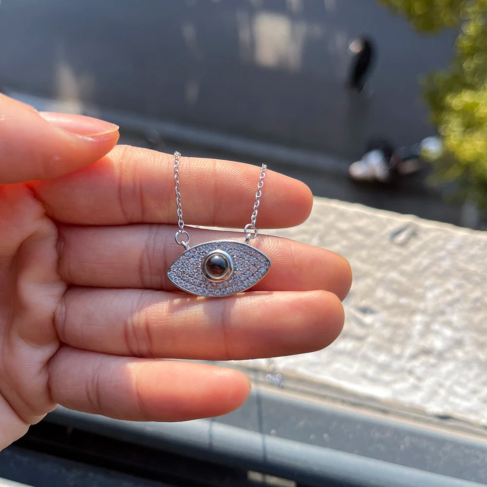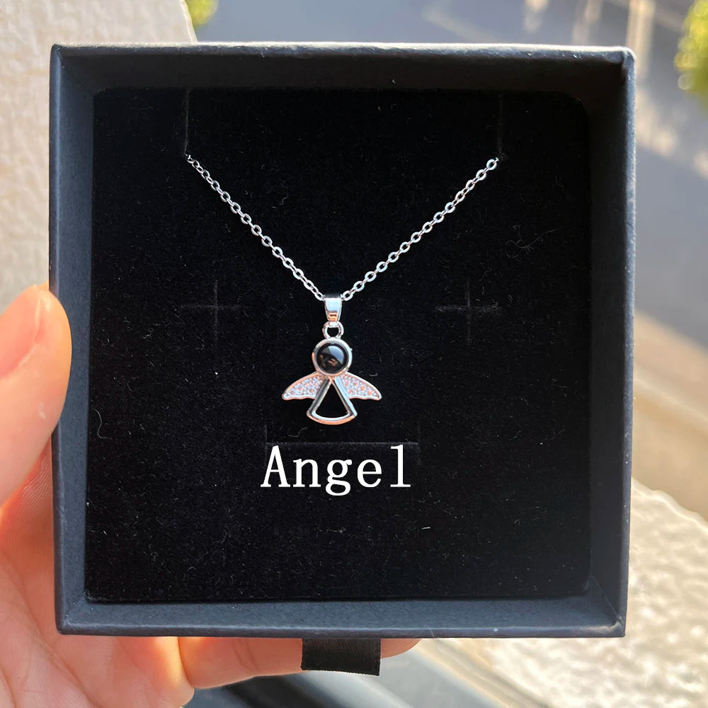 Valentine's Day Gift Custom Photo Projection Necklace DIY Picture Inside Titanium Steel Chain Couple Necklace Women Men Jewelry