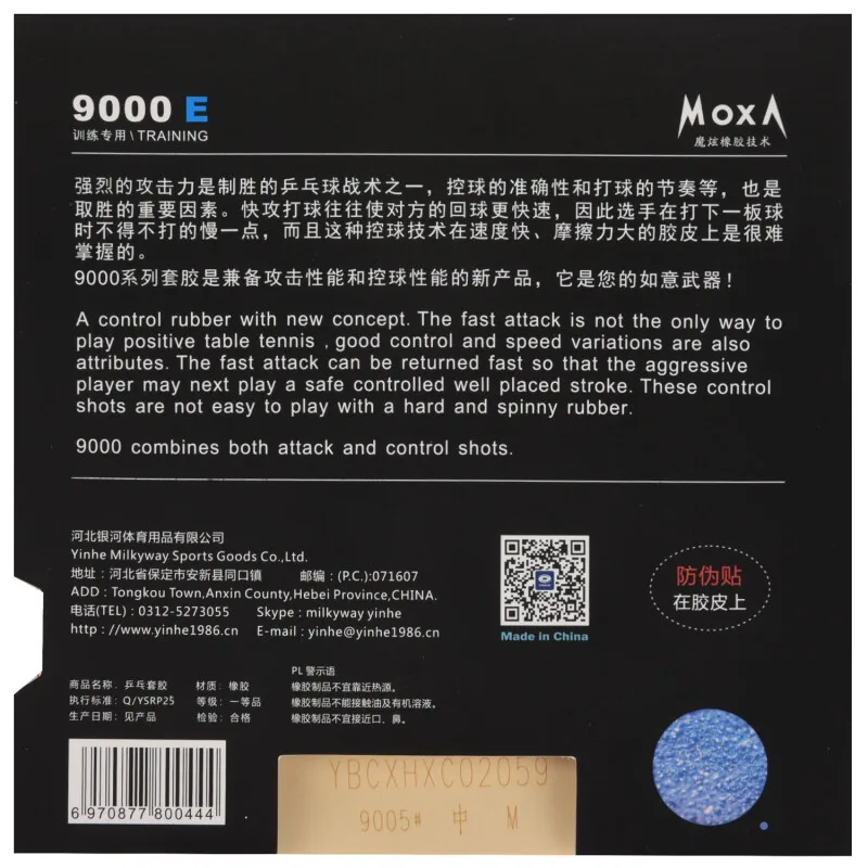 A control rubber with a new concept. The fast attack is not the only way to play positive table tennis, good control and apeed variations are also attributes. The fast attack can bereturned fast so that the aggressive player may next play a safe conetrolled well-placed stroke. These control shots are not too easy to play with a hard and spinny rubber. 9000 combines both attack and control shots.