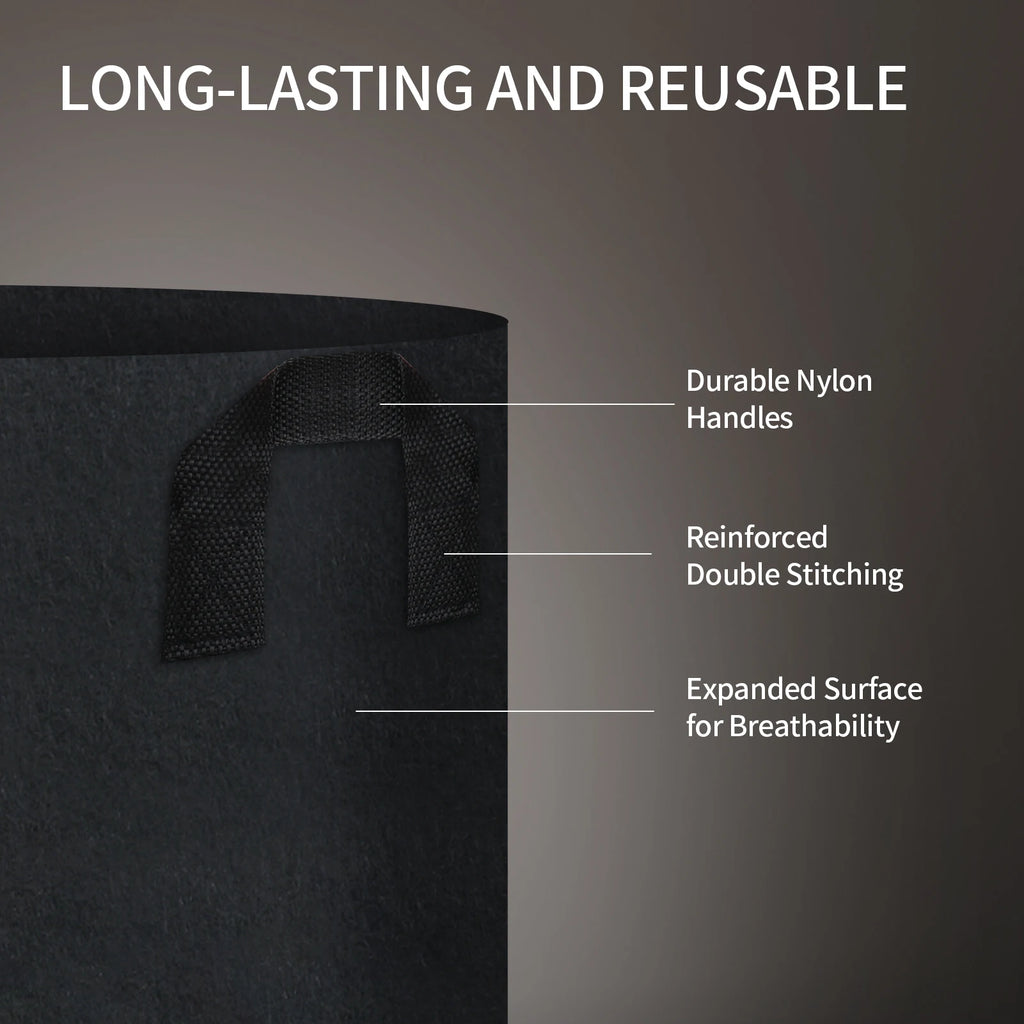 • Portable Bags: Heavy-duty handles and rugged material mean you can move bags full of soil and plants with ease