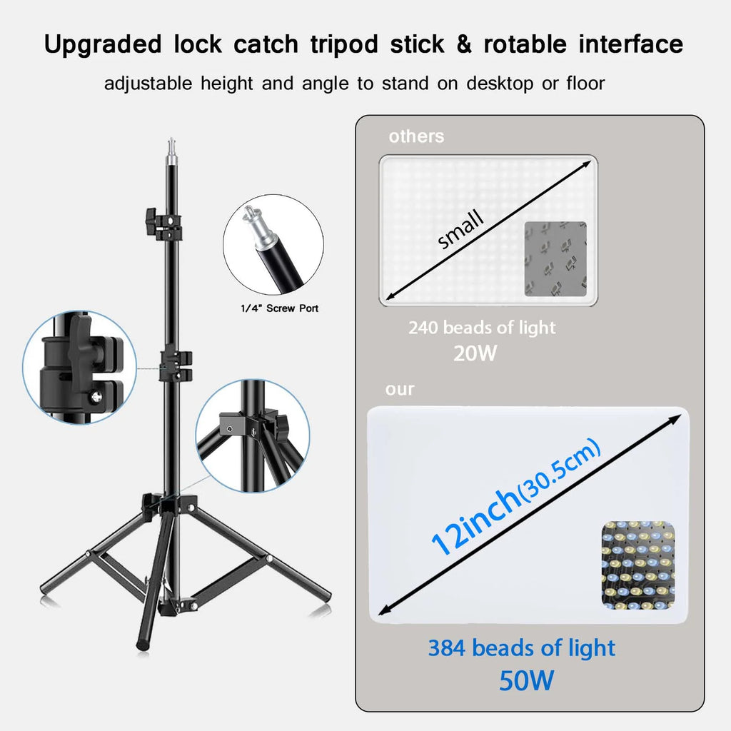 50W 3000k-6500k Bi-color LED Fill Lamp Video Light Panel Photography Lighting Live Stream Photo Studio Light with Tripod Stand