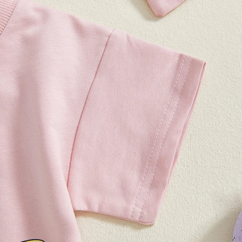 Baby Girl Easter Casual Romper Short Sleeve Bunny Letter Print Romper with HeadbandSize (cm)