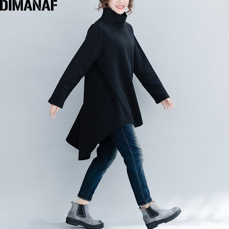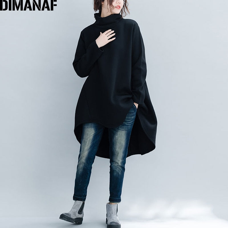DIMANAF Autumn Winter Pullover Women Clothing Warm Hoodies Sweatshirts Loose Cotton Knitted Thicken Tops Turtleneck Red Black