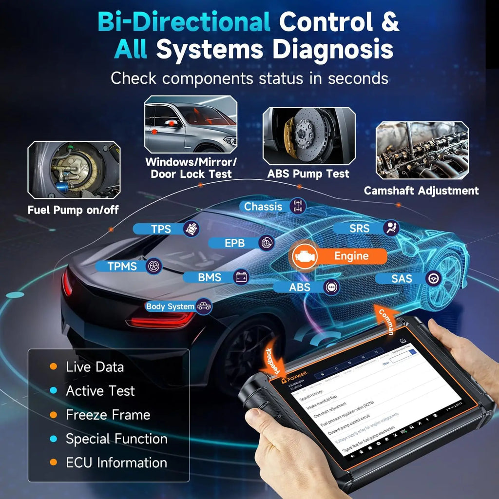 Experience the power of bidirectional control with our car diagnostic scanner. Instantly check the status of key components like coolant fan, A/C, windows, and more by sending commands to car subsystems. Enjoy wireless connectivity with Bluetooth Dongle and One-click WIFI, saving you time and avoiding overcharged diagnostic fees.