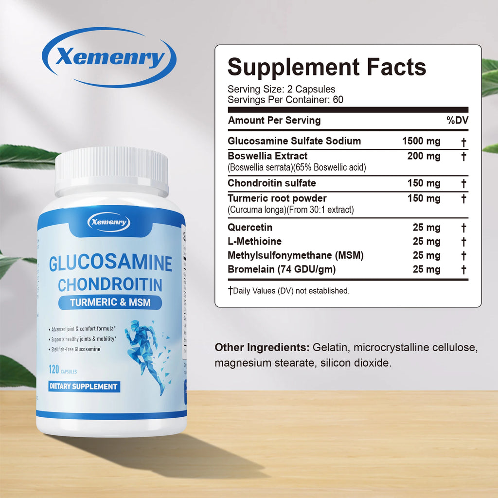 Glucosamine Chondroitin Turmeric & MSM - Supports Joint, Bone and Cartilage Health and Improves Joint Mobility - 120 Capsules