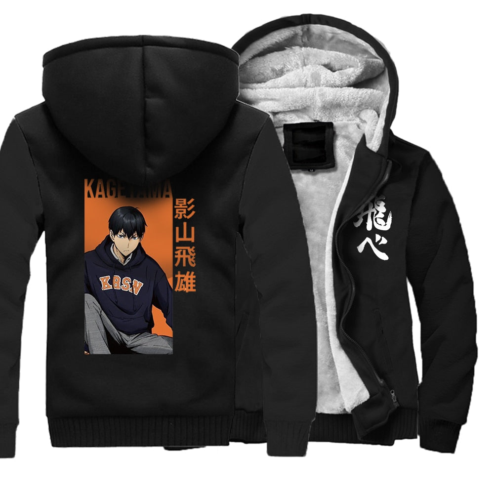 Japanese Anime Haikyuu Print Kageyame Mens Hoodies Streetwear 2021 Winter Warm Sweatshirts Harajuku Coats Outerwear Funny Jacket