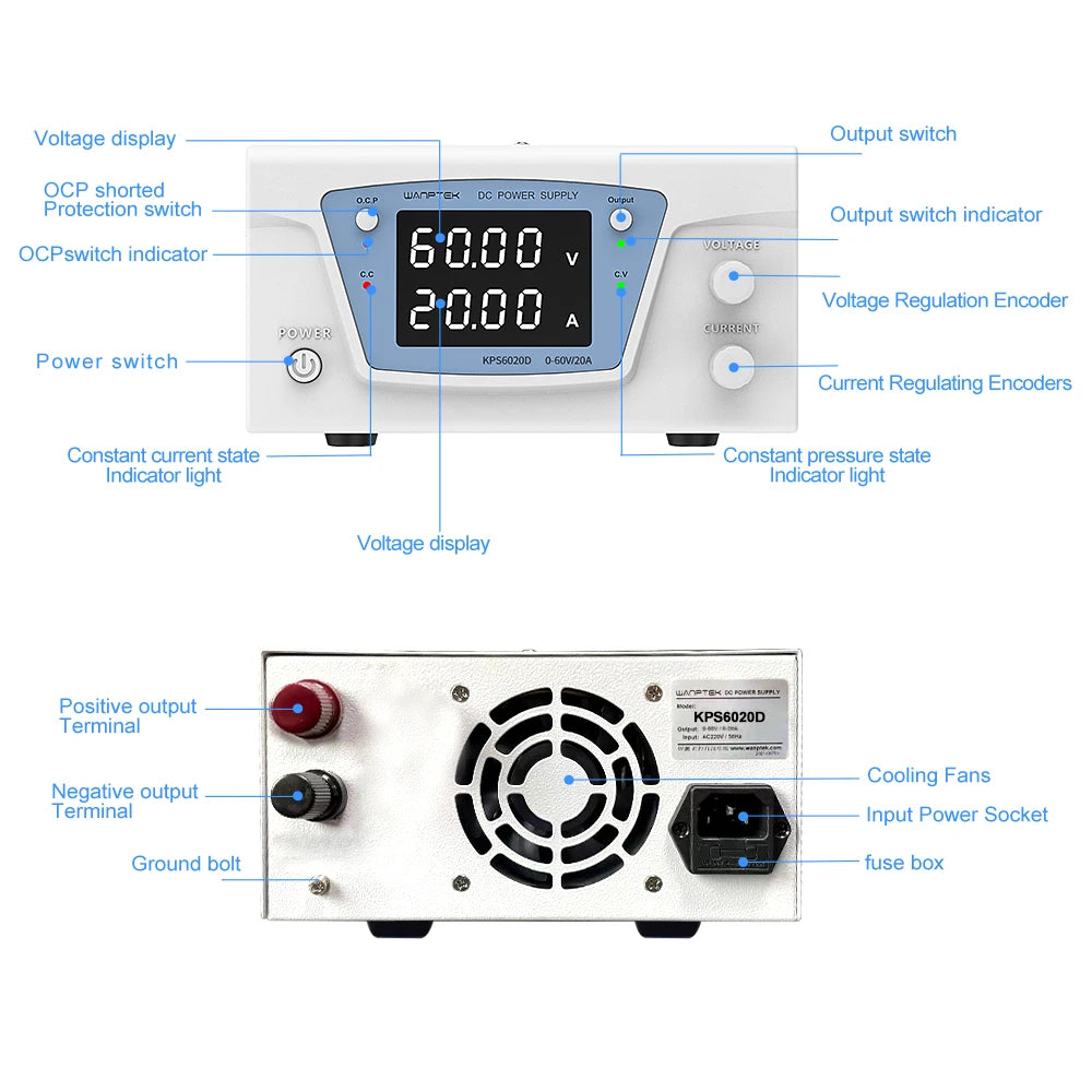 KPS series products are a high-power digital display program-controlled switching DC regulated power supply newly developed and upgraded by our company. This product is a DC programmable power supply with exquisite appearance, small size, high performance, powerful function and simple operation. It is suitable for testing in aerospace and defense, consumer electronics, computers and peripherals, communications, semiconductors, solar energy and automotive electronics. The product can display voltage and current at the same time. The output voltage and output current are adjusted by the encoder knob, which can be continuously adjusted between 0 and the nominal value. It has high power, large current, fast response, and fast load transient response, Low noise, easy to use and other significant advantages! The stability and ripple coefficient of the power supply are very good. It has various protection circuits such as short-circuit protection, over-voltage protection, over-current protection, over-temperature protection, etc., which can work at full load for a long time and is deeply loved by users.