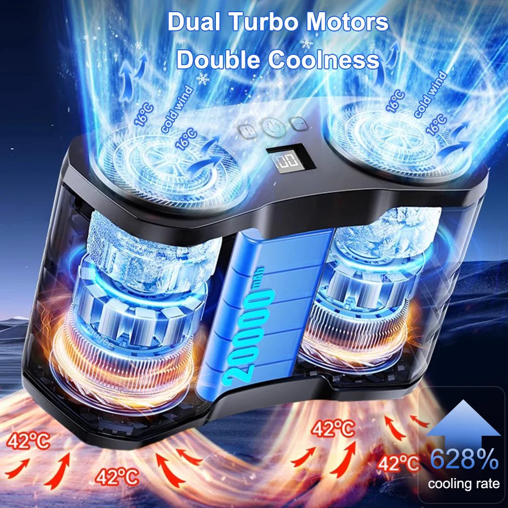 【Stay Cool Max 35 Hours】: This portable waist fan packs a powerful 20,000mAh battery, delivering 9–35 hours of airflow on a single charge. Perfect for outdoor work, job sites, camping, or travel in the heat. The smart display keeps you updated on battery life.