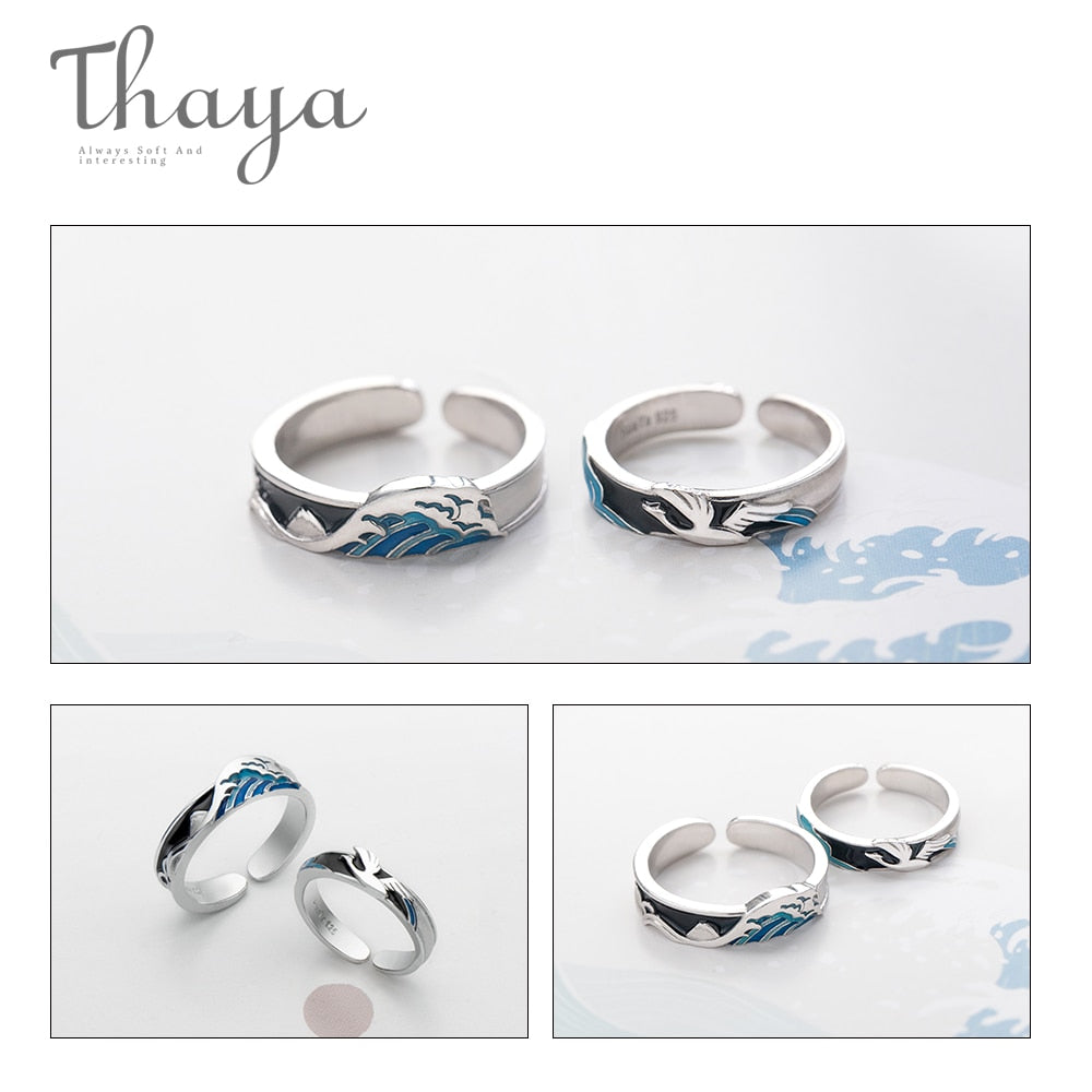 Thaya Flying Bird Wave Ring s925 Silver Blue Drop Oil 3D Wave Couple Rings for Women Elegant Irish Fine Jewelry Lovers'Gift