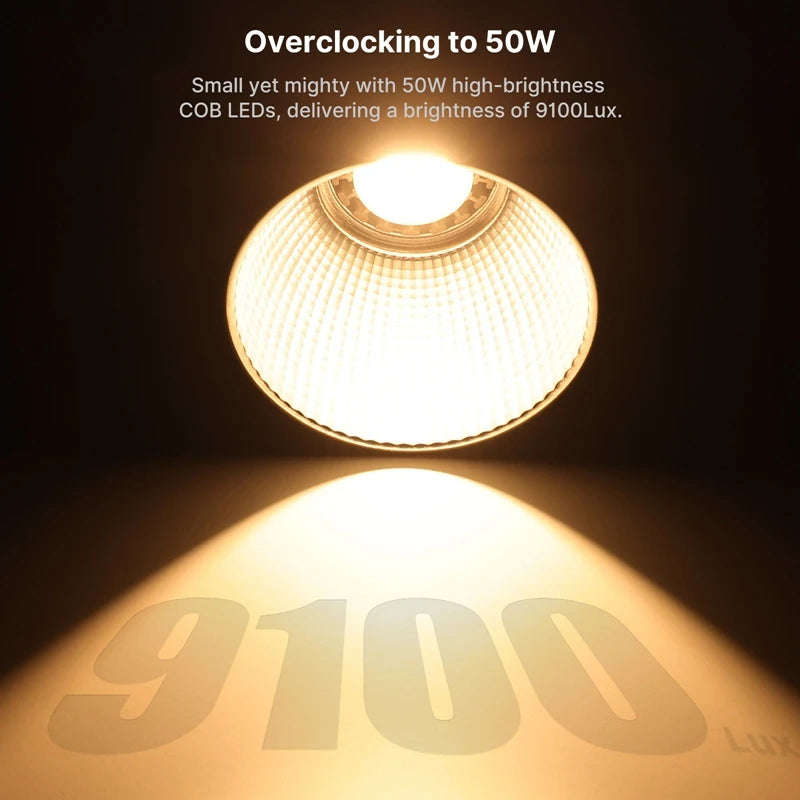 Small yet mighty with 50W high-brightness COB LEDs, delivering a brightness of 9100Lux.