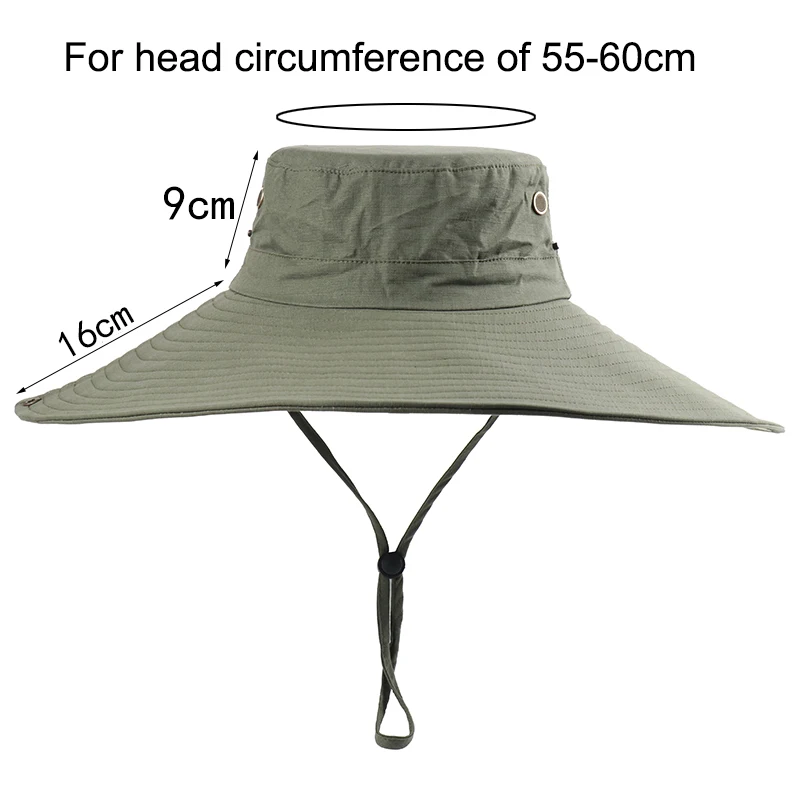 16cm Long Wide Brim Sun Hat Breathable Safari Hat Men Women Boonie Hat Summer UV Protection Cap Hiking Fishing Bucket Hat Beach