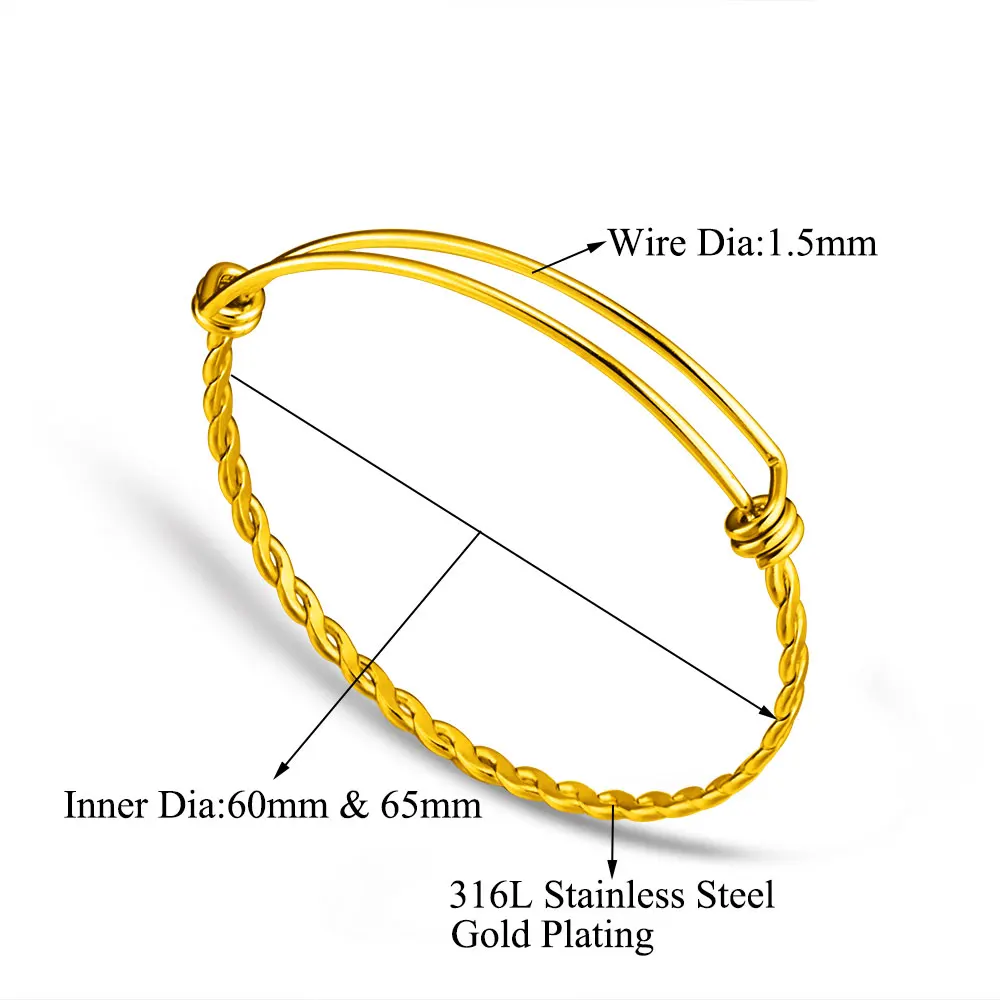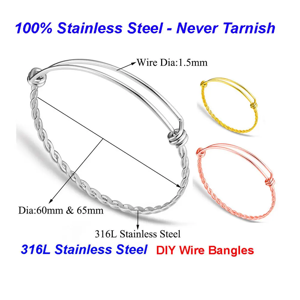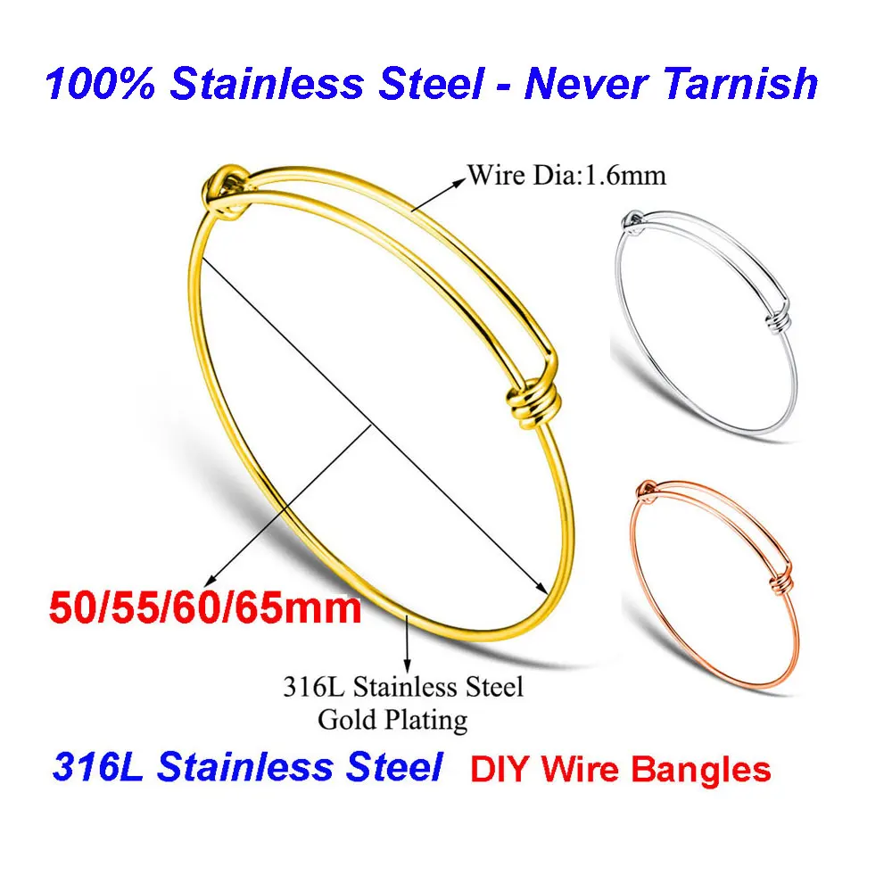 20pcs/lot 316 Stainless Steel DIY Charm Bangle 50-65mm Jewelry Finding Expandable Adjustable Wire Bracelet Wholesale