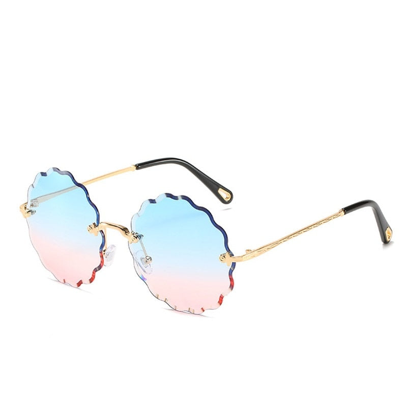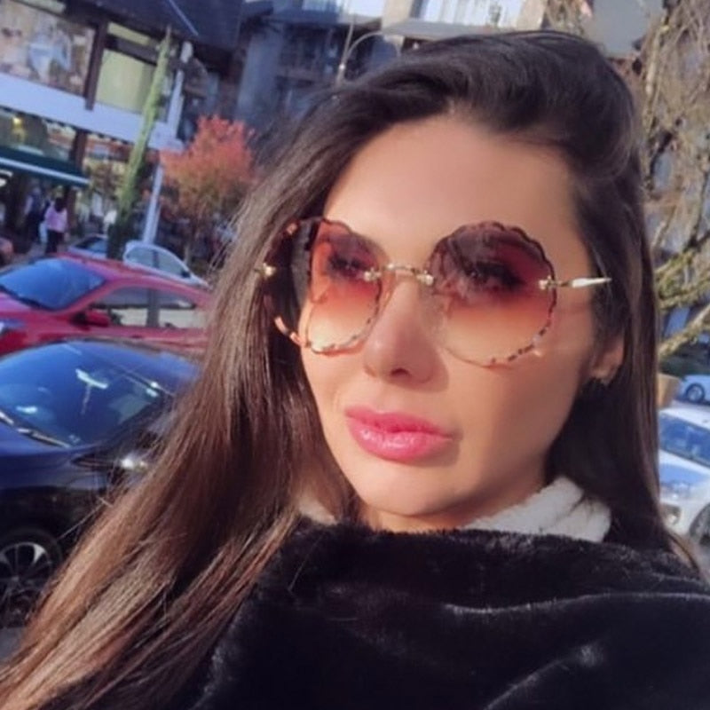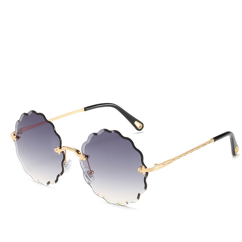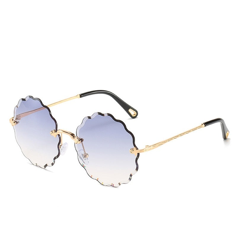 Brand Fashion Oversized Round Sunglasses Women Flower Design Trendy Rimless Sun Glasses Shades for Women Driving Eyewear UV400